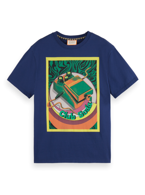 Scotch & Soda Regular Fit Chest Artwork T-Shirt In Organic Cotton-Denim Blue