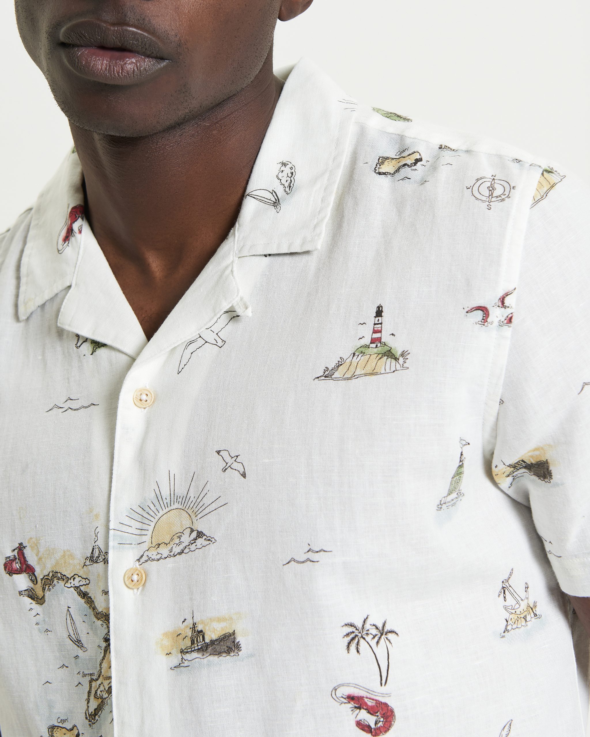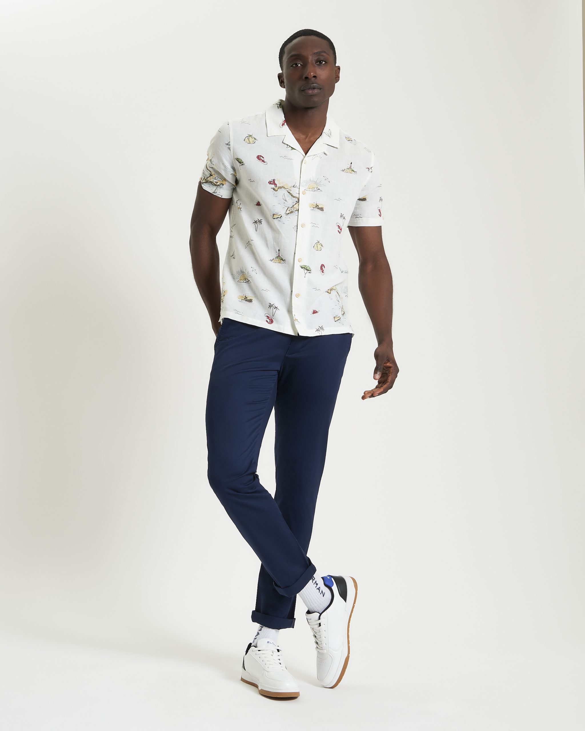 A short-sleeved shirt with a classic fit. Featuring a Brighton to Amalfi print, revere collar & button-down closure with a Ben Sherman branded woven label near the hem.