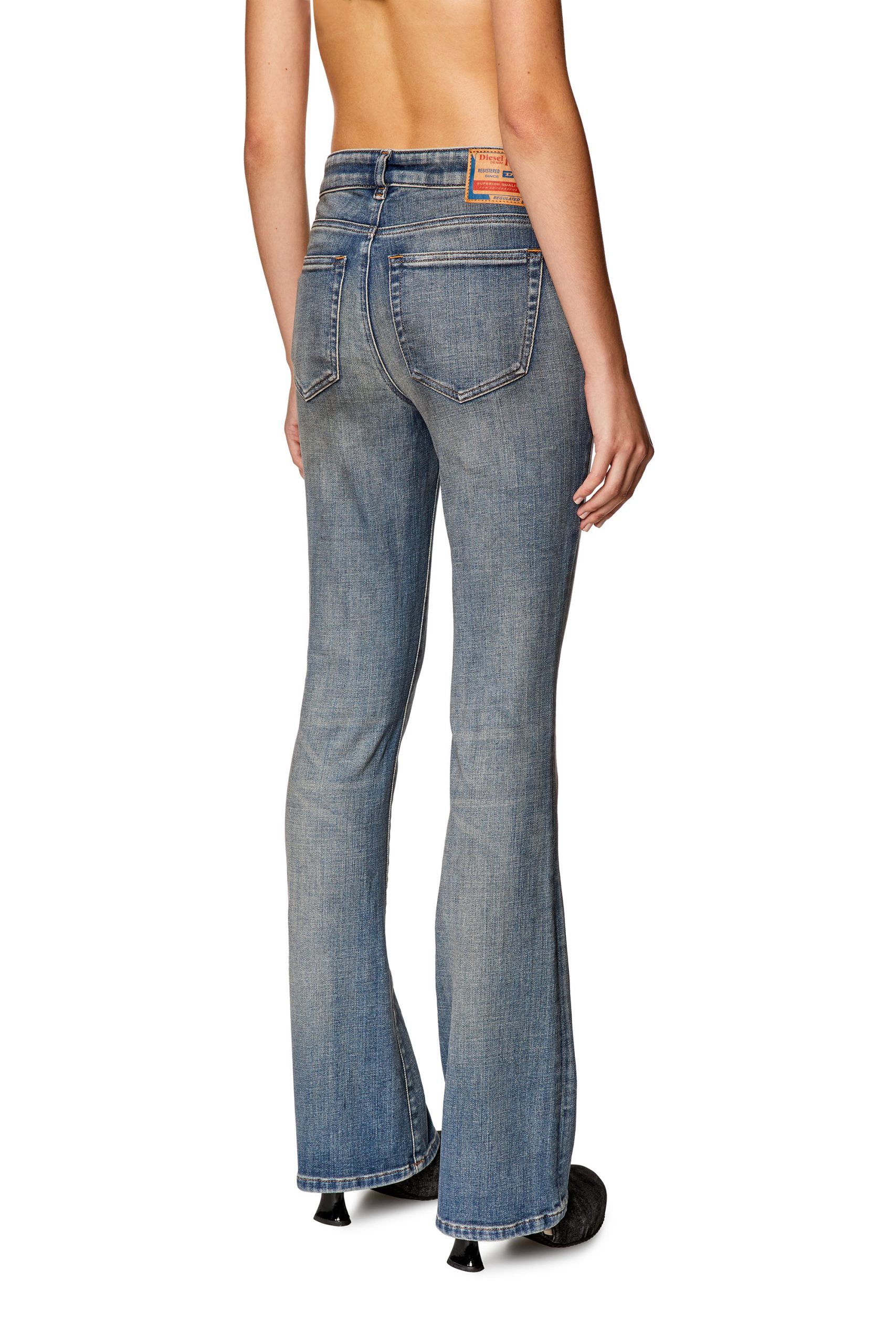 Bootcut style with a low waist and higher back coverage made from stretch denim for ultimate comfort. Featuring a zip fly & finished in a light blue wash.
