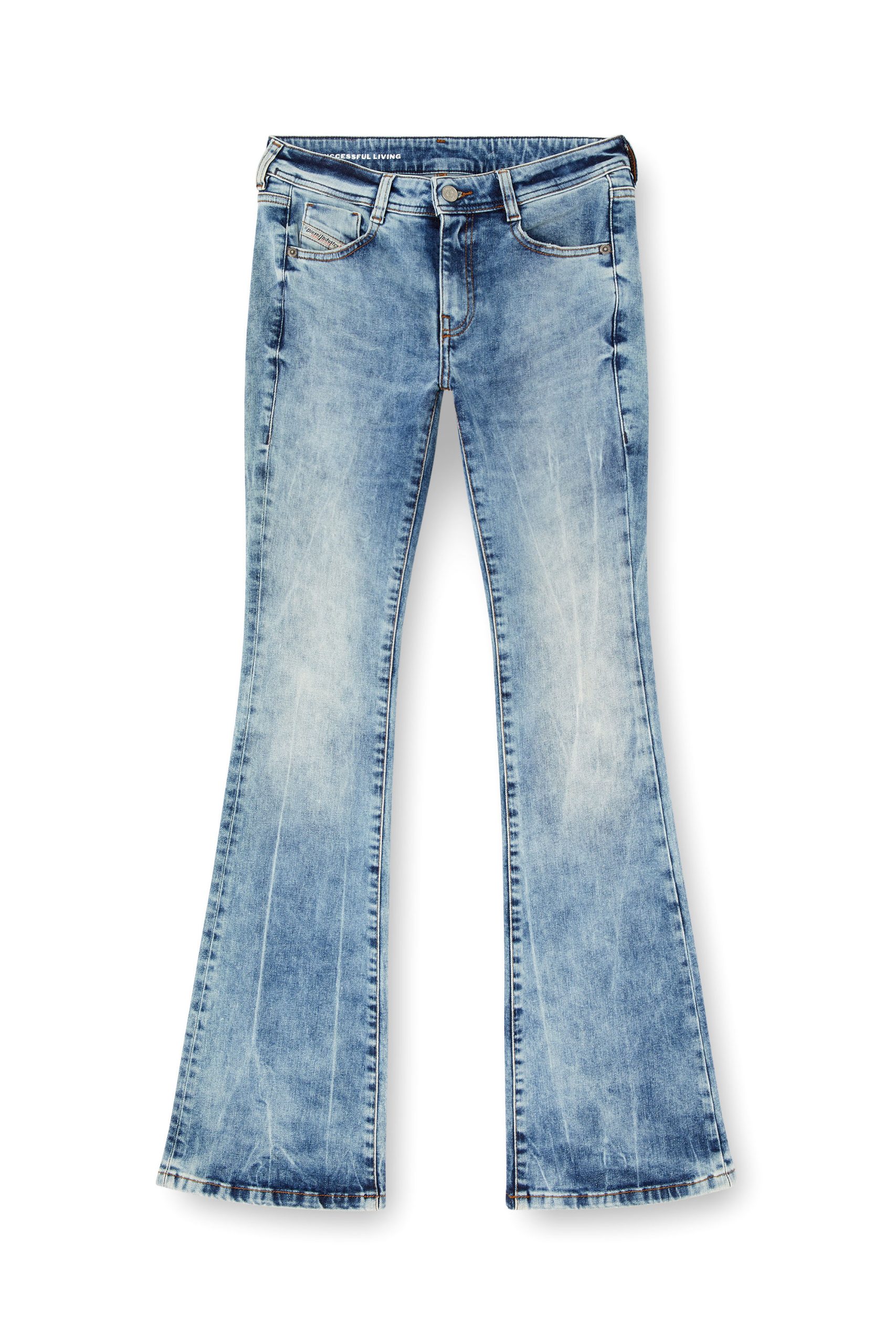 Bootcut style with a low waist and higher back coverage made from stretch denim for ultimate comfort. Featuring a zip fly & finished in a light blue wash.