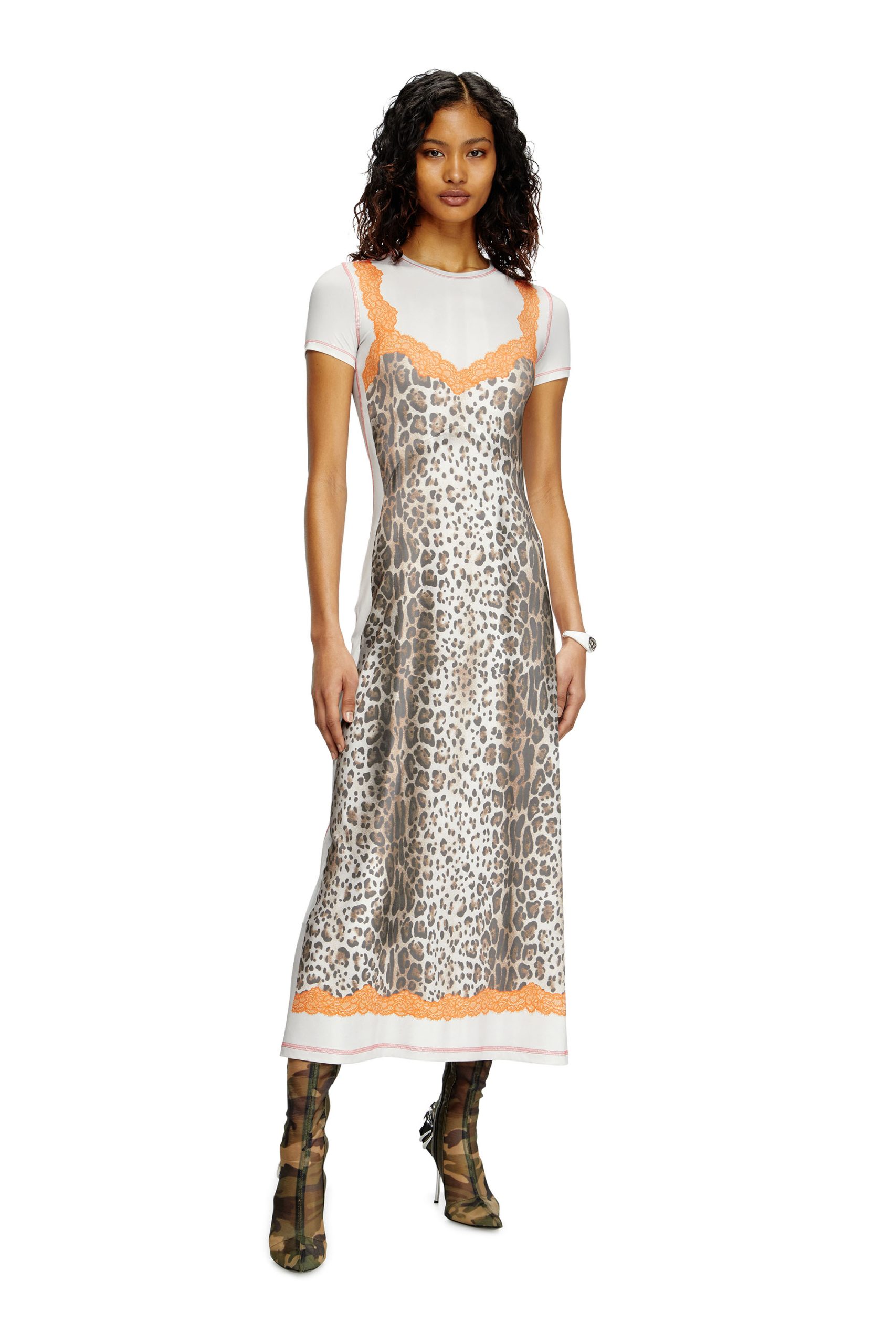 A midi-length, slim fit dress. Cut from stretch jersey, the lace-trimmed slip is an optical illusion.
