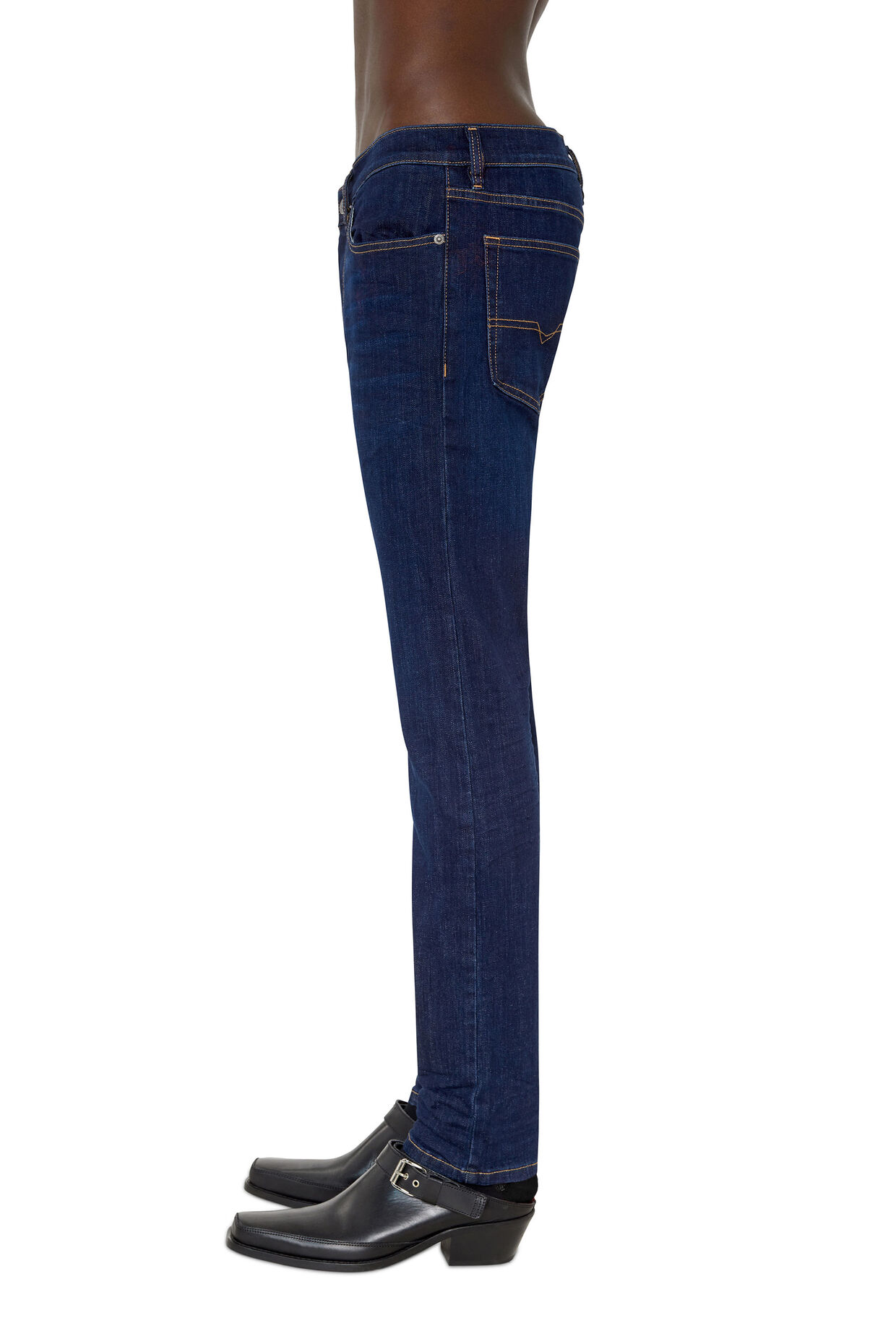Slim style jean with a slightly low crotch accompanied with a button fly, finished in dark blue wash.