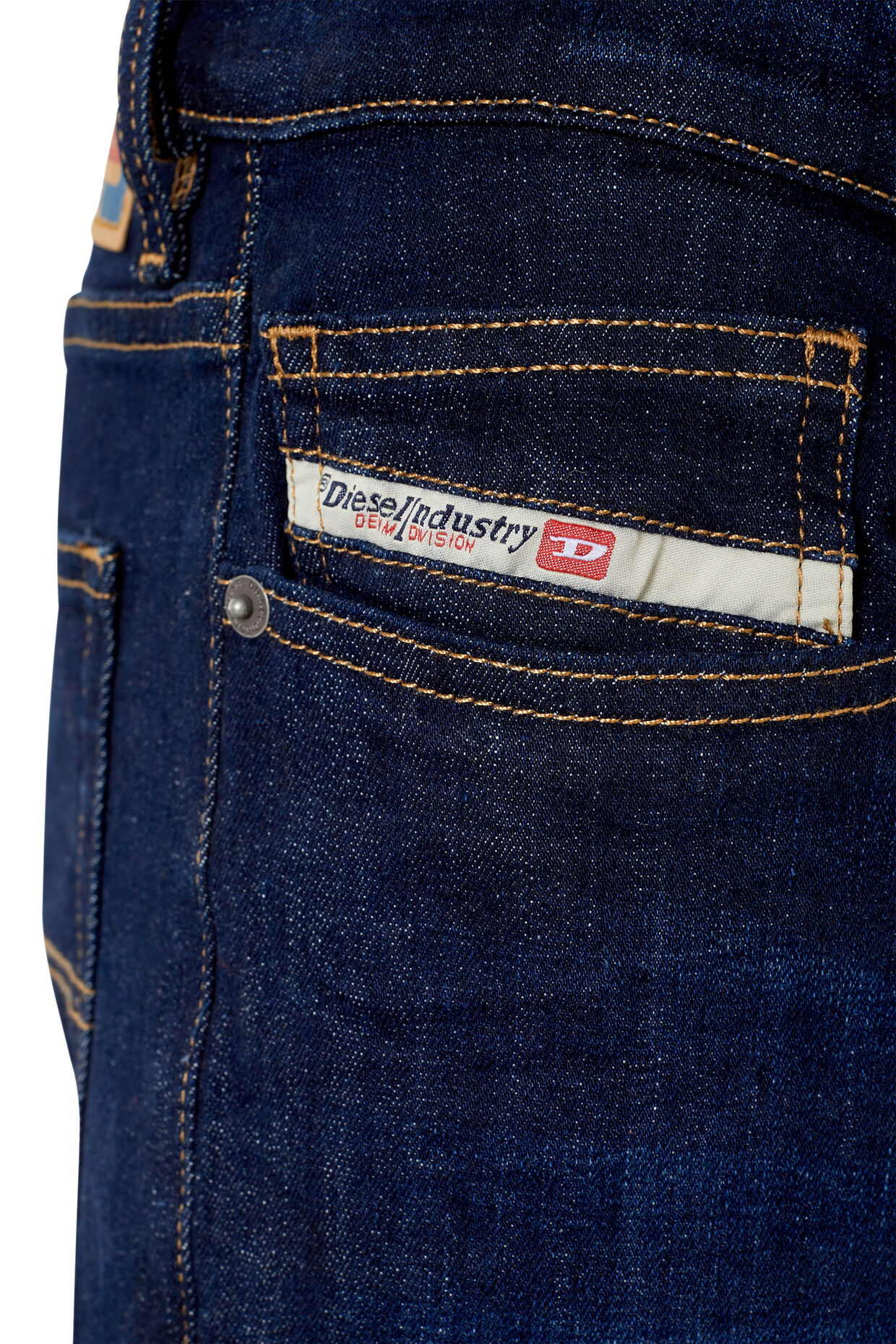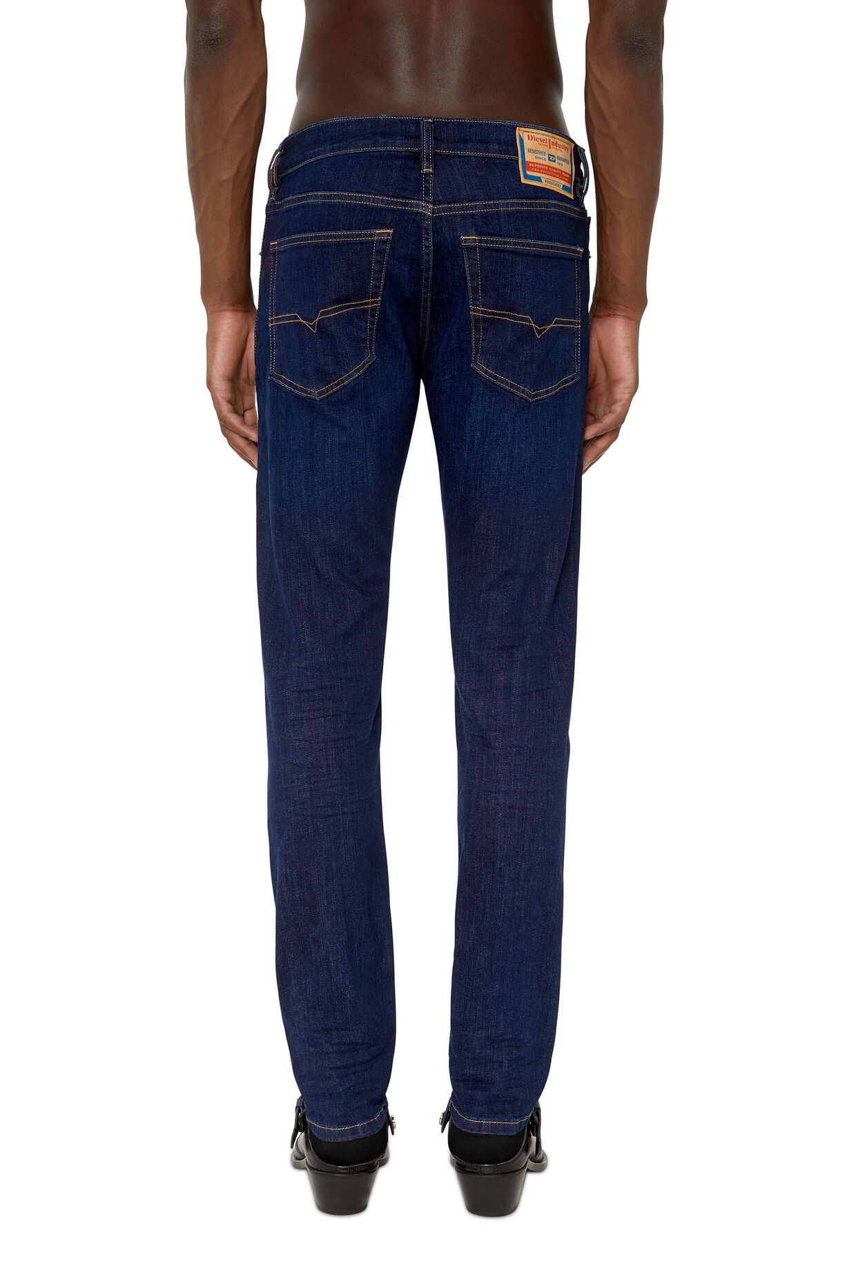 Slim style jean with a slightly low crotch accompanied with a button fly, finished in dark blue wash.