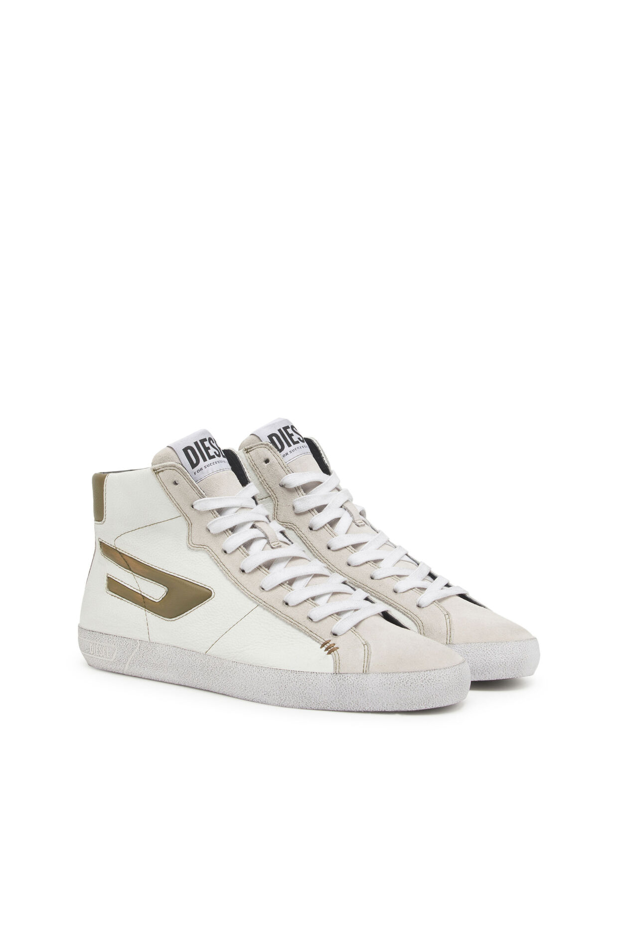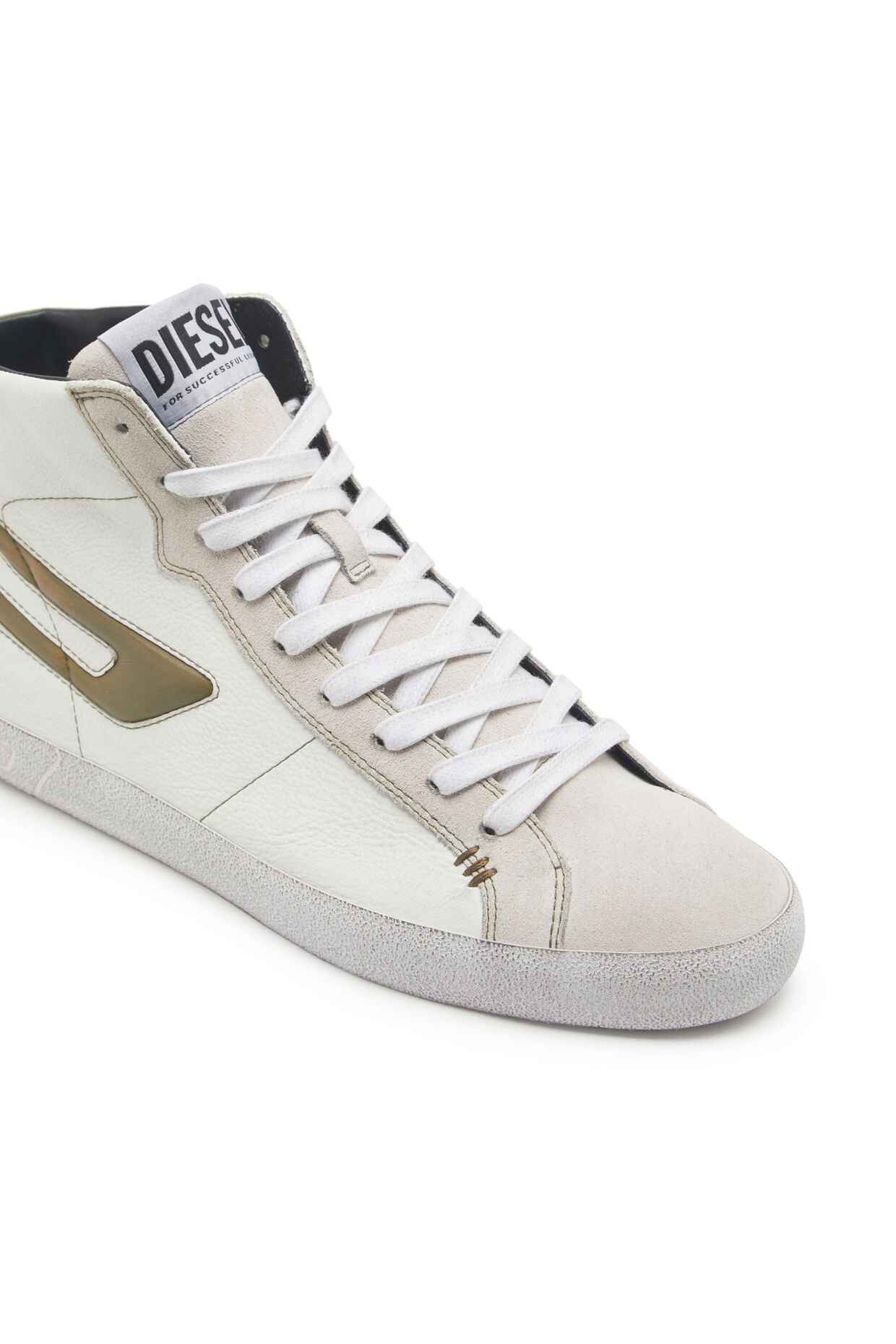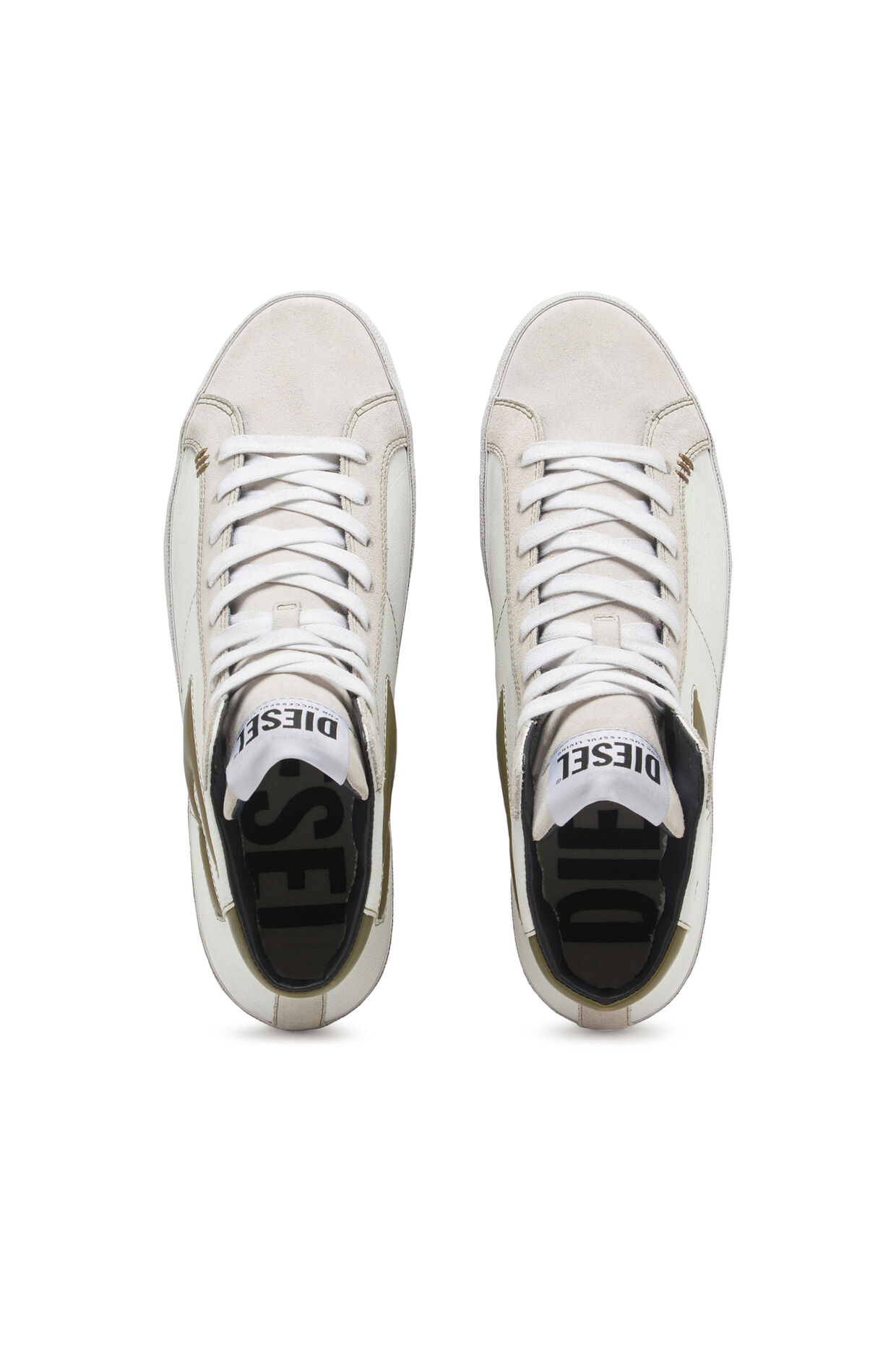 This low Diesel sneaker is a great compliment for your casual outfit of the day. Embrace the contemporary style and individuality with our S-Leroji Mid Top Sneaker in White/Gold.