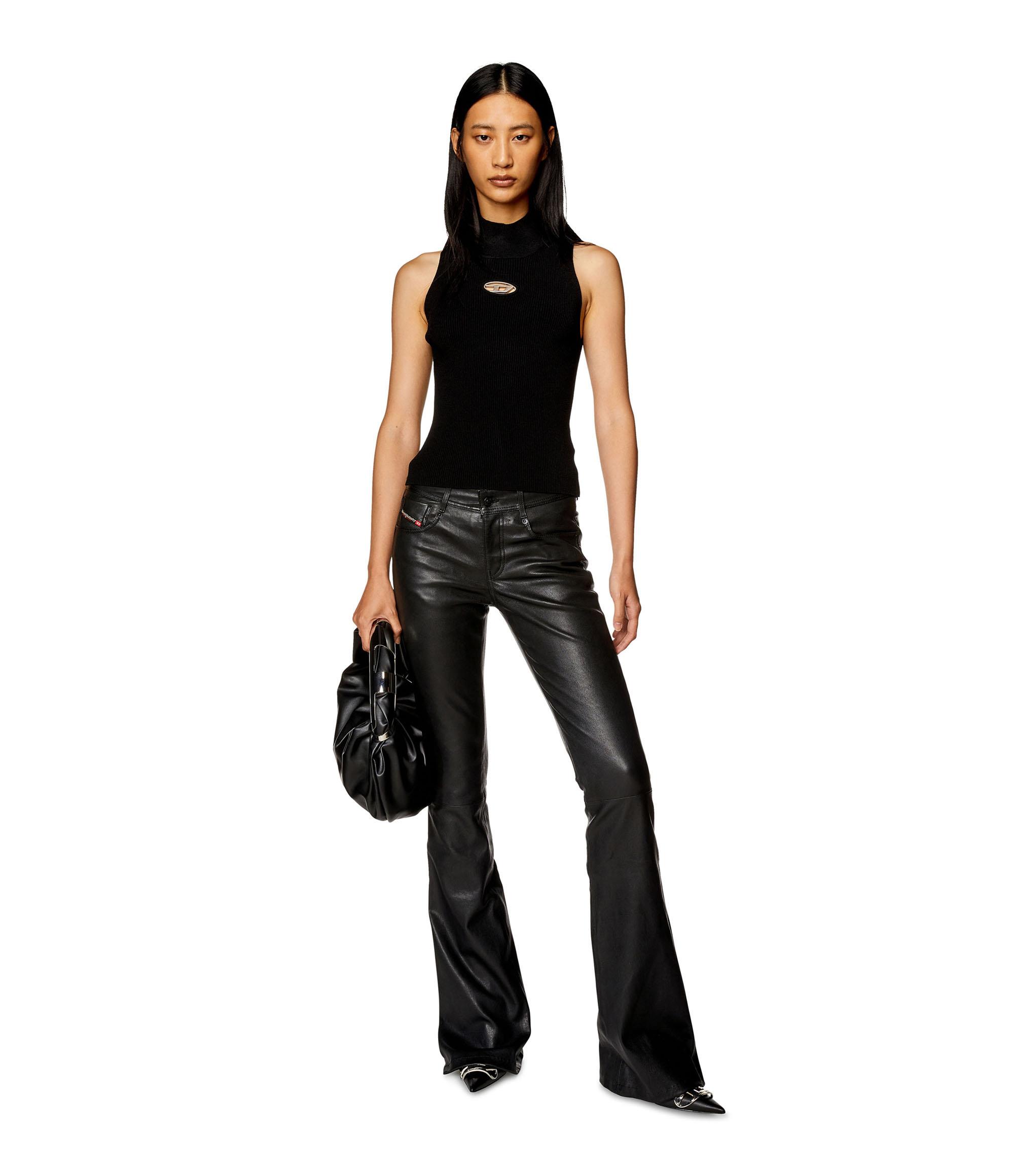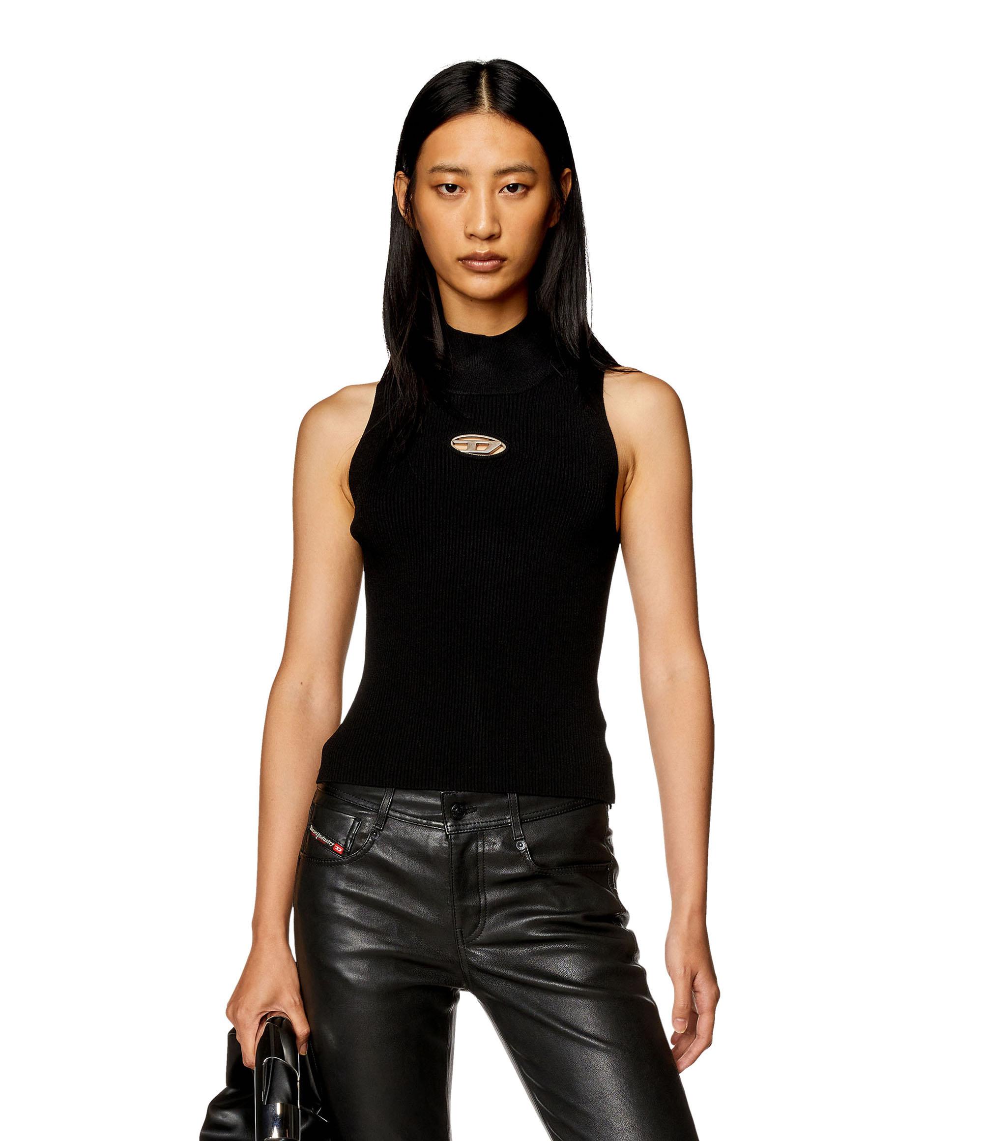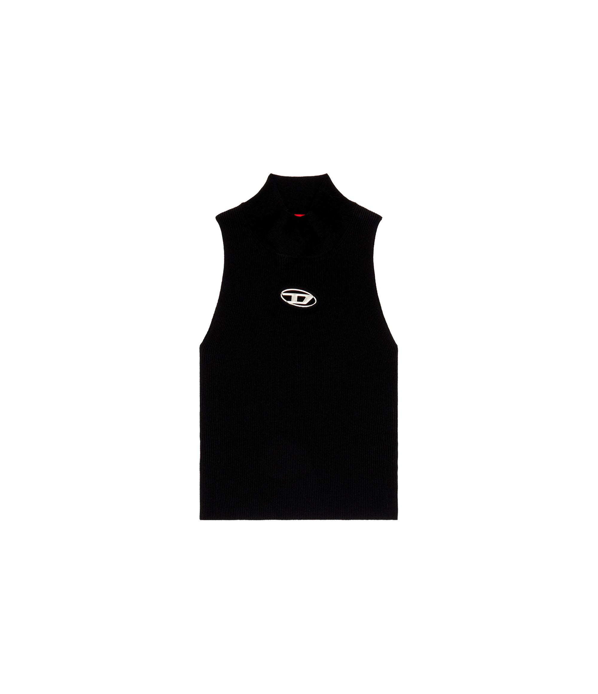 A slim-fit, sleeveless, slightly cropped top made from ribbed knit. Featuring a high neck & bold logo plaque inserted into the chest cut-out.