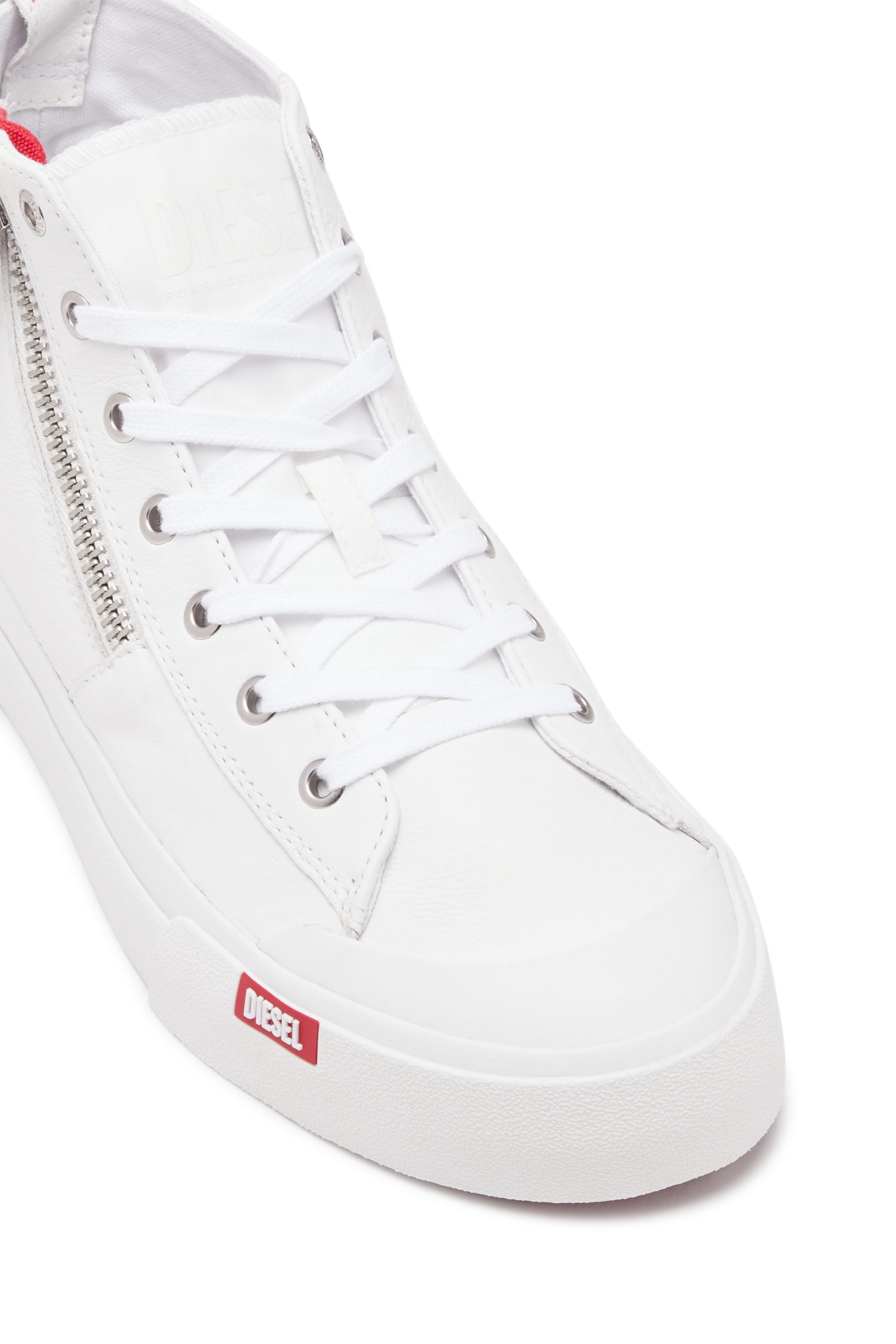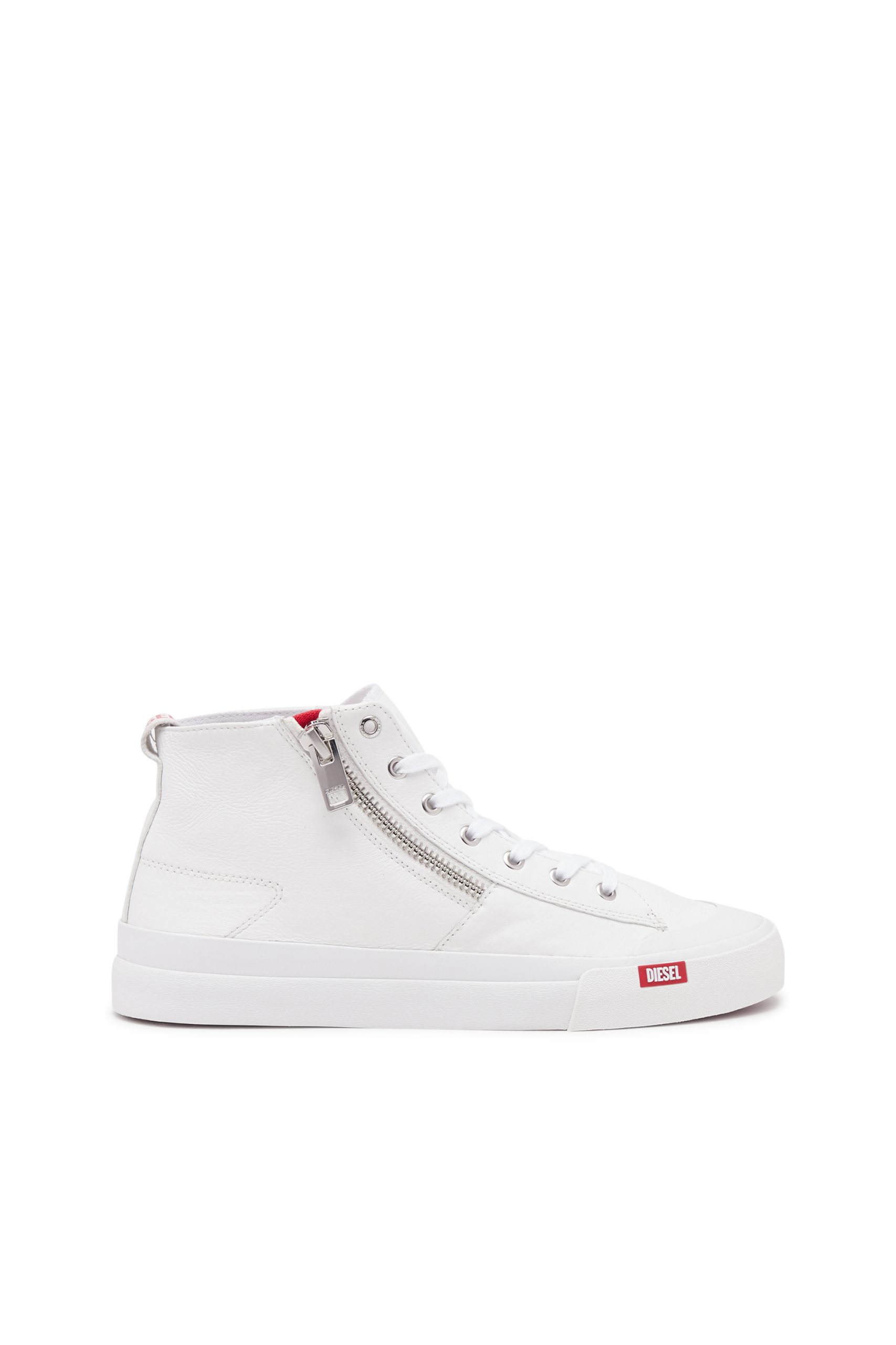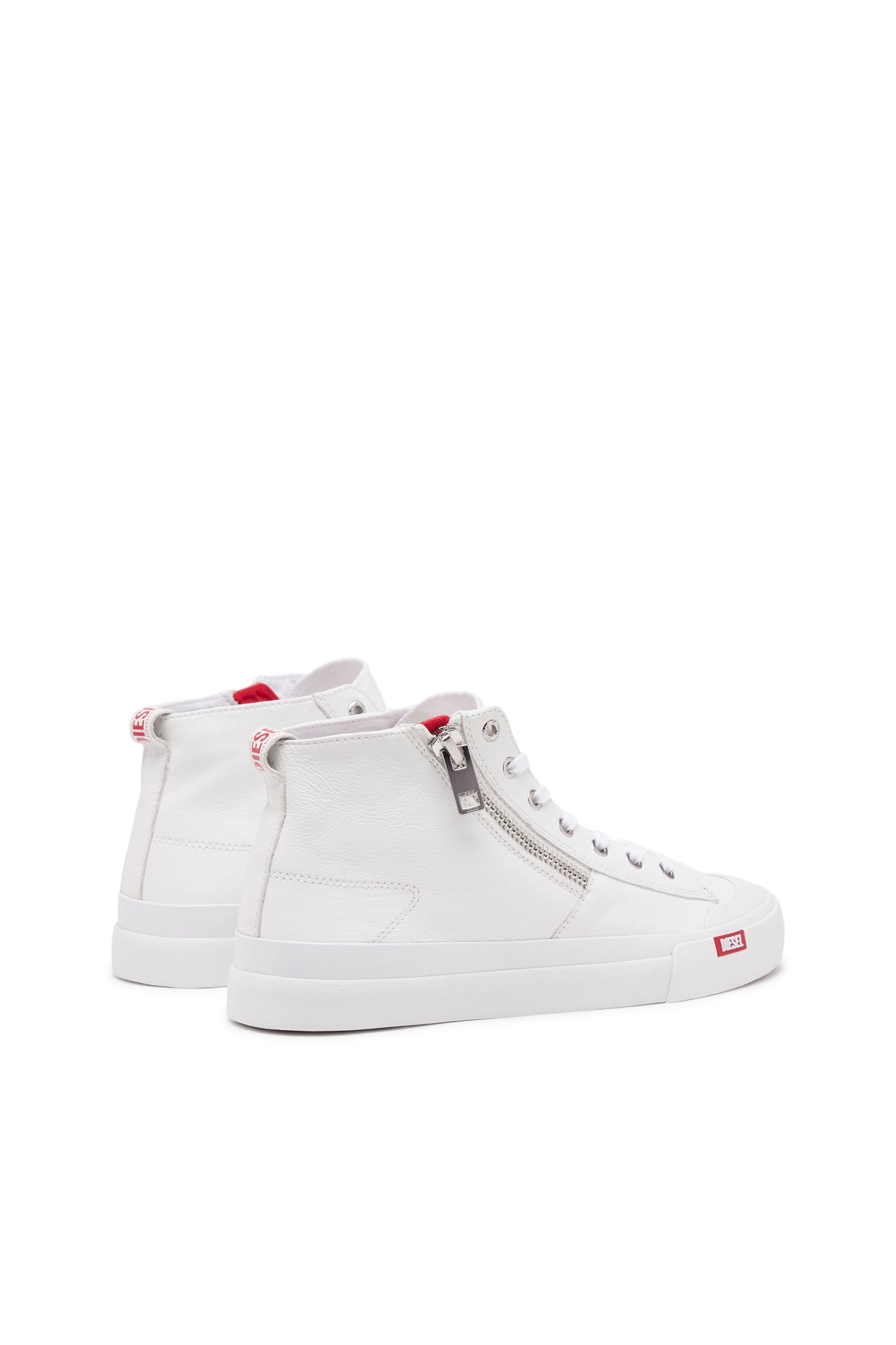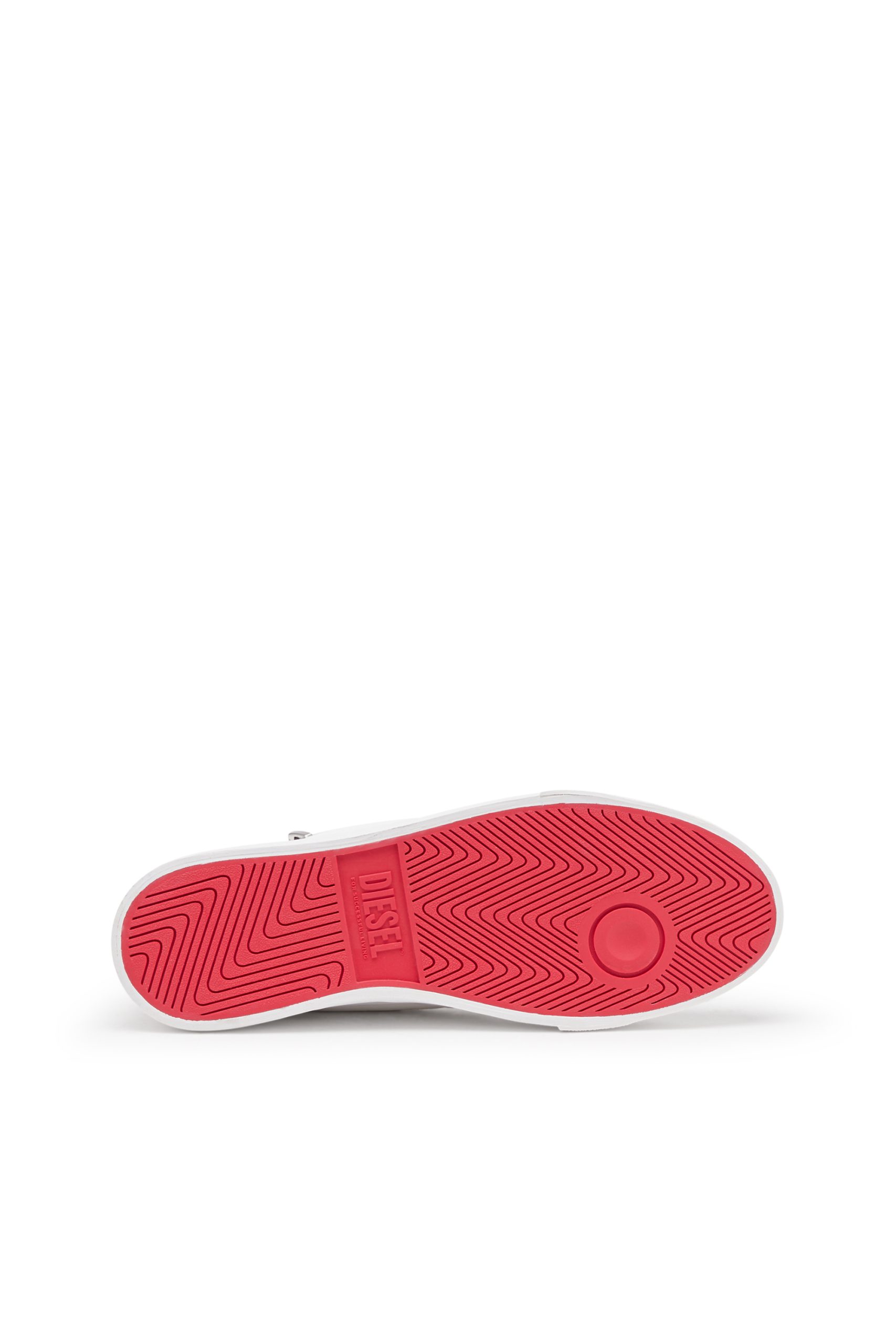 The Diesel S-Athos Sneaker in white with red rubber sole is a stylish mens’s low-top trainer, made from polyurethane for comfort and durability.