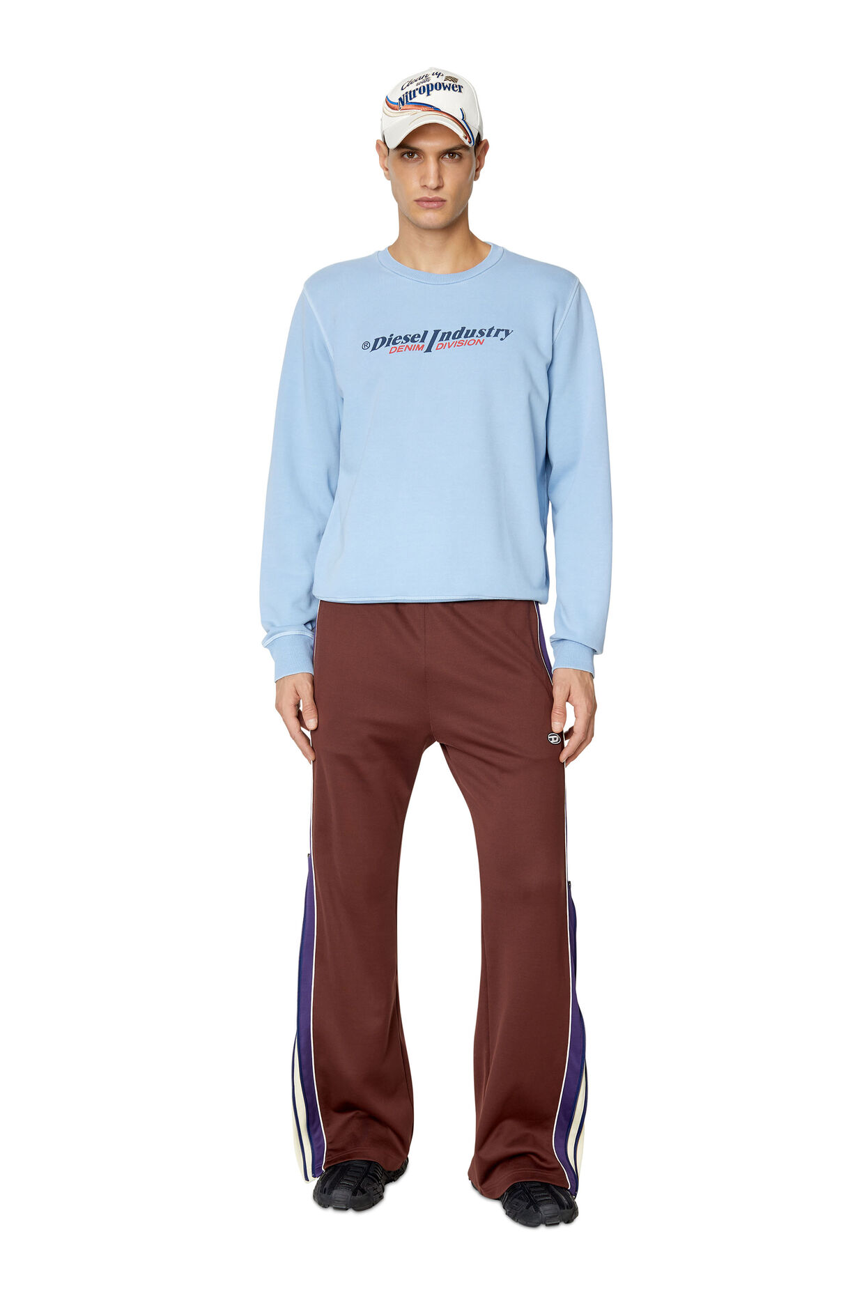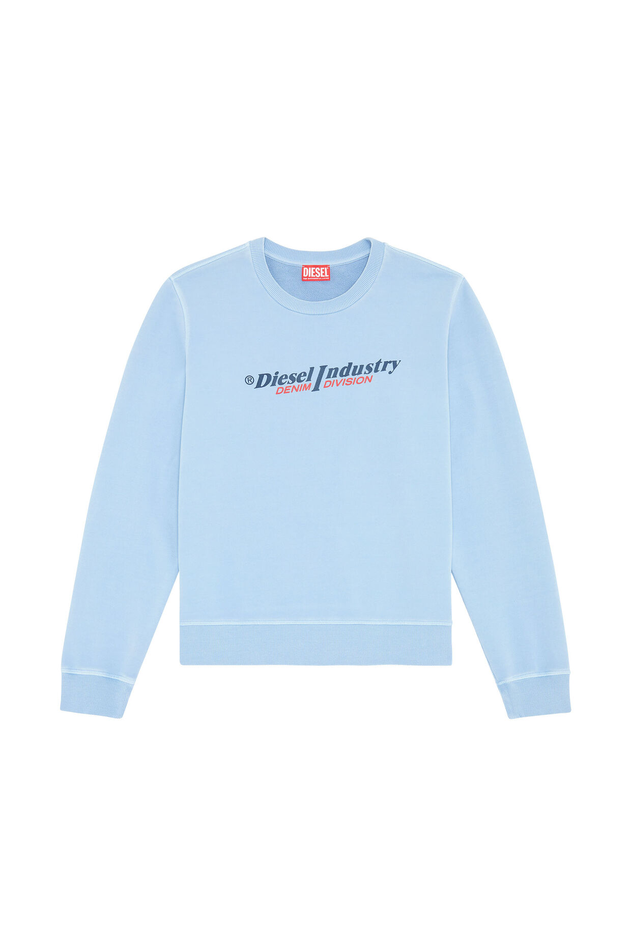 A regular cut crewneck sweatshirt with ribbing at the collar, hem & cuffs features a Diesel graphic on the chest.