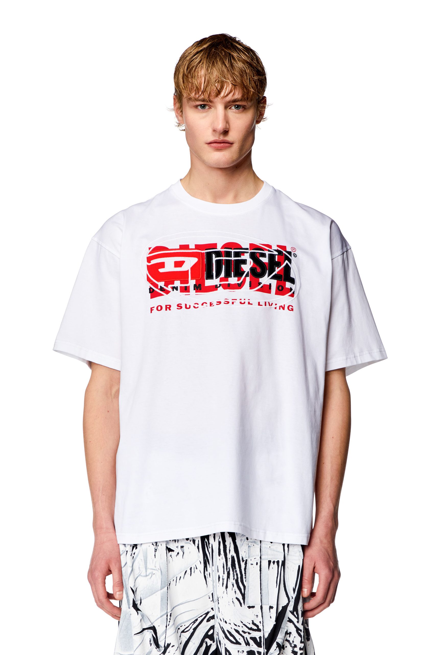 A regular fit, crew neck tee featuring a graphic Diesel print across the chest.