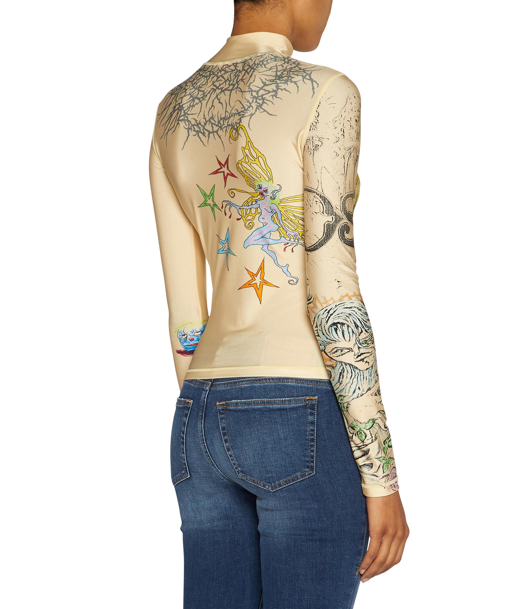 A slim fit, stretch top featuring eye-catching graphics inspired by tattoo culture & a mock neckline.