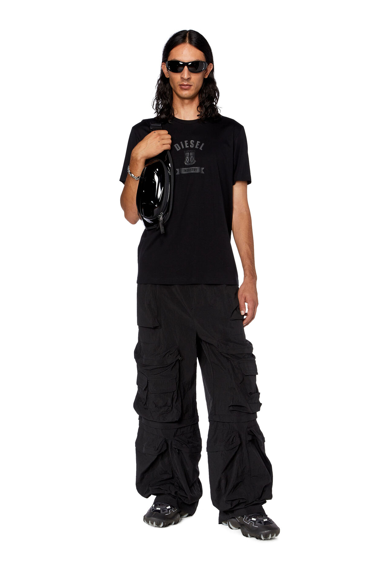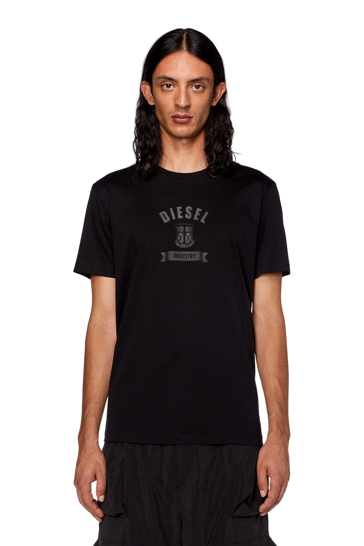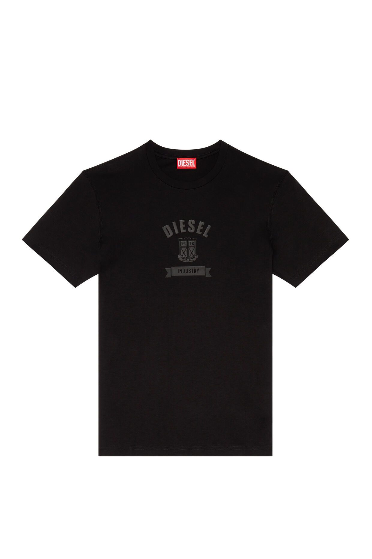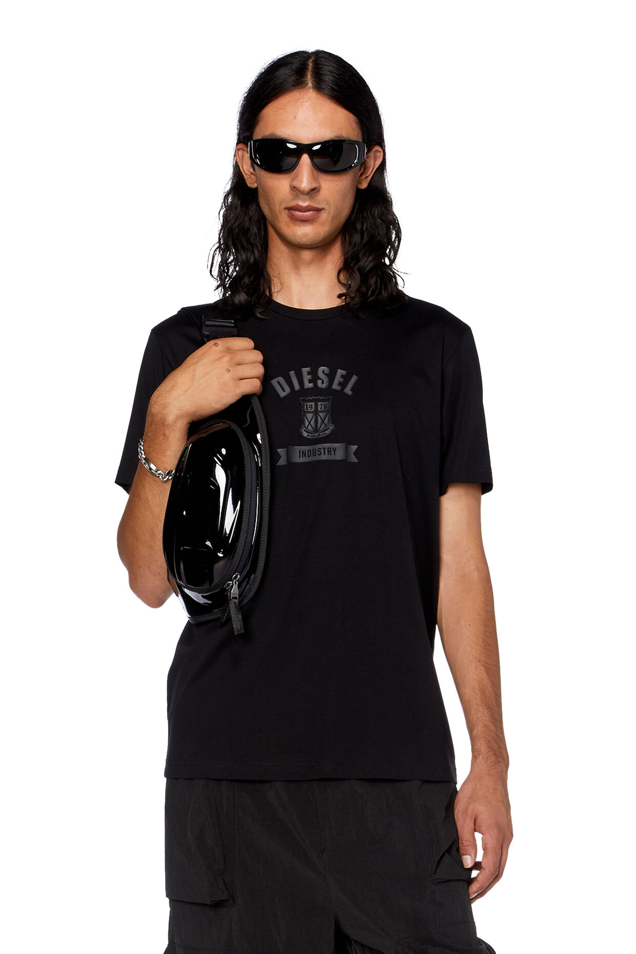 A slim fit short-sleeve tee with a crew neck, featuring a graphic Diesel print across the chest.