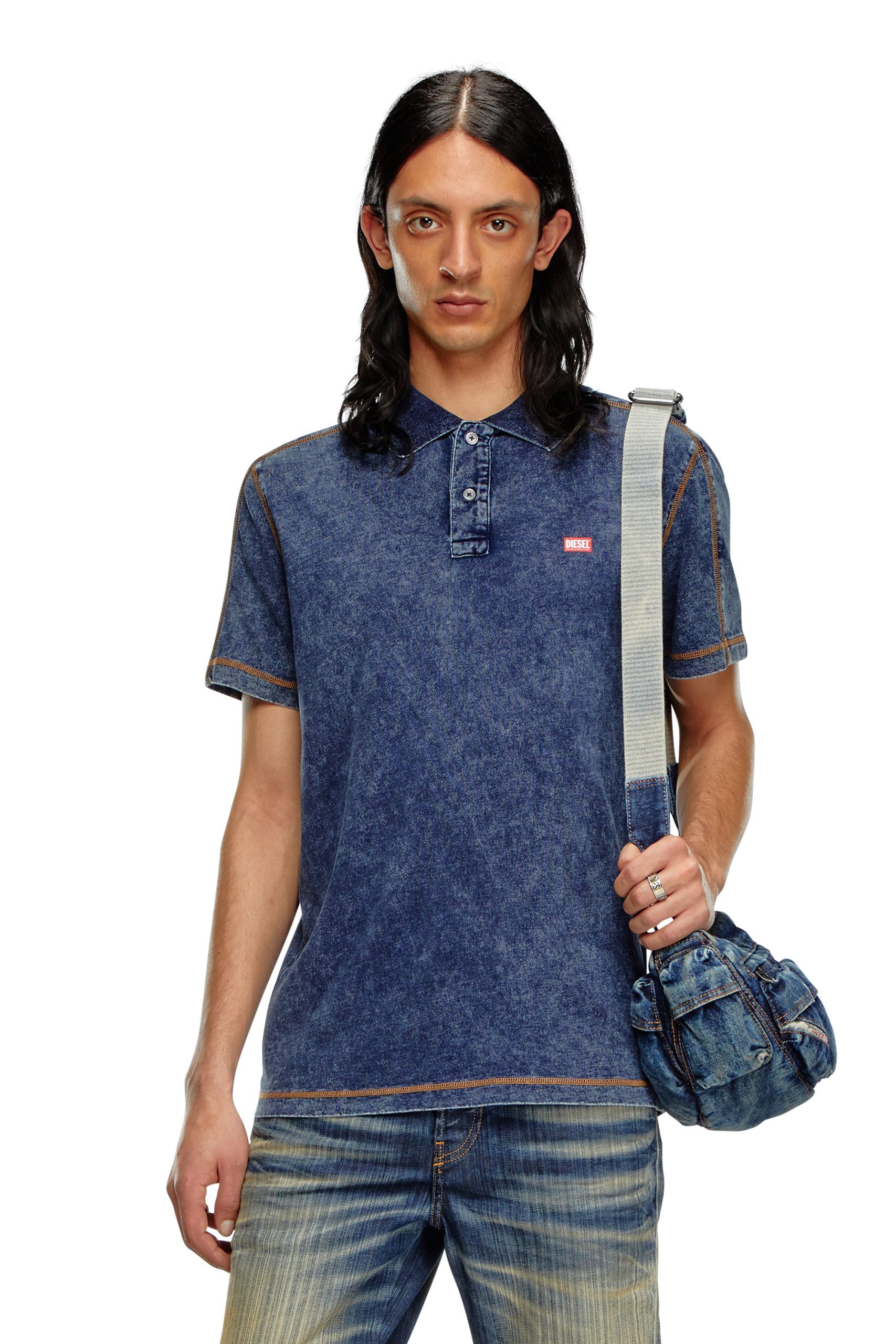 A slim fit, polo shirt, featuring a denim look & subtle embroidered Oval D long on the chest.