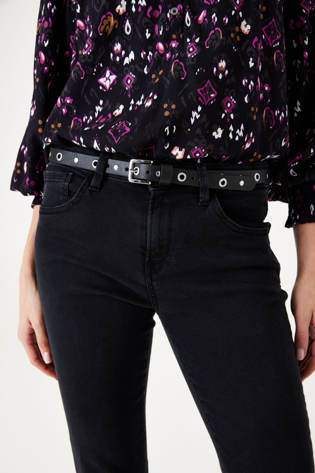 Made from durable 100% cow leather, featuring a metal buckle & eyelit details.