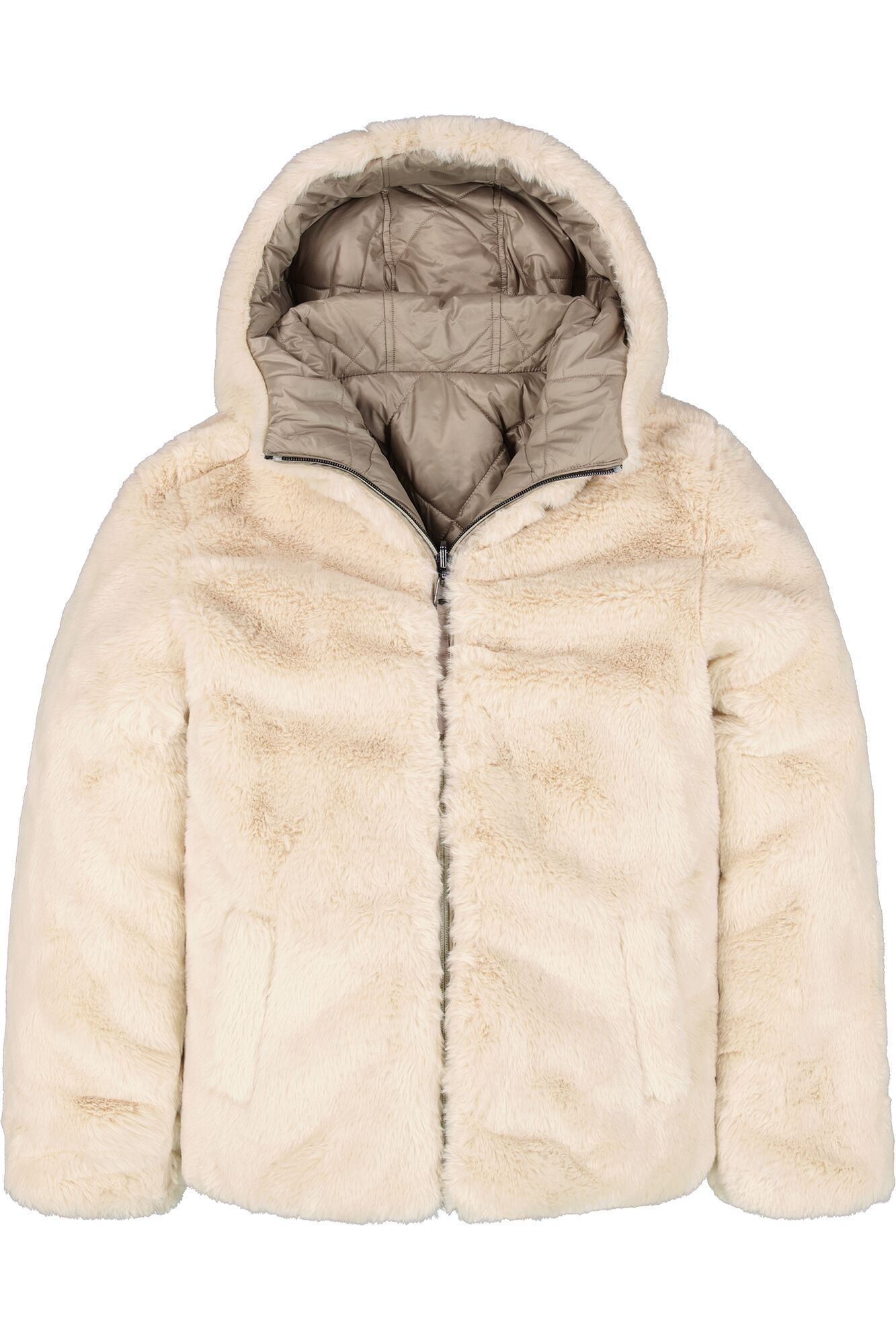 A relaxed fit, reversible, faux fur, hooded bomber jacket. Featuring a water-repellent function on the reverse side, a zip closure, side pockets & light padding for extra warmth.