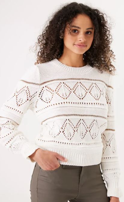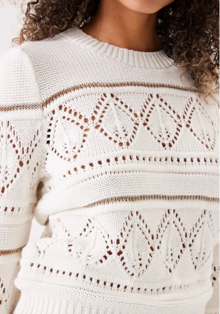 This Garcia women’s sweater is a premium product made with 99% cotton, 1% metallic yarn.