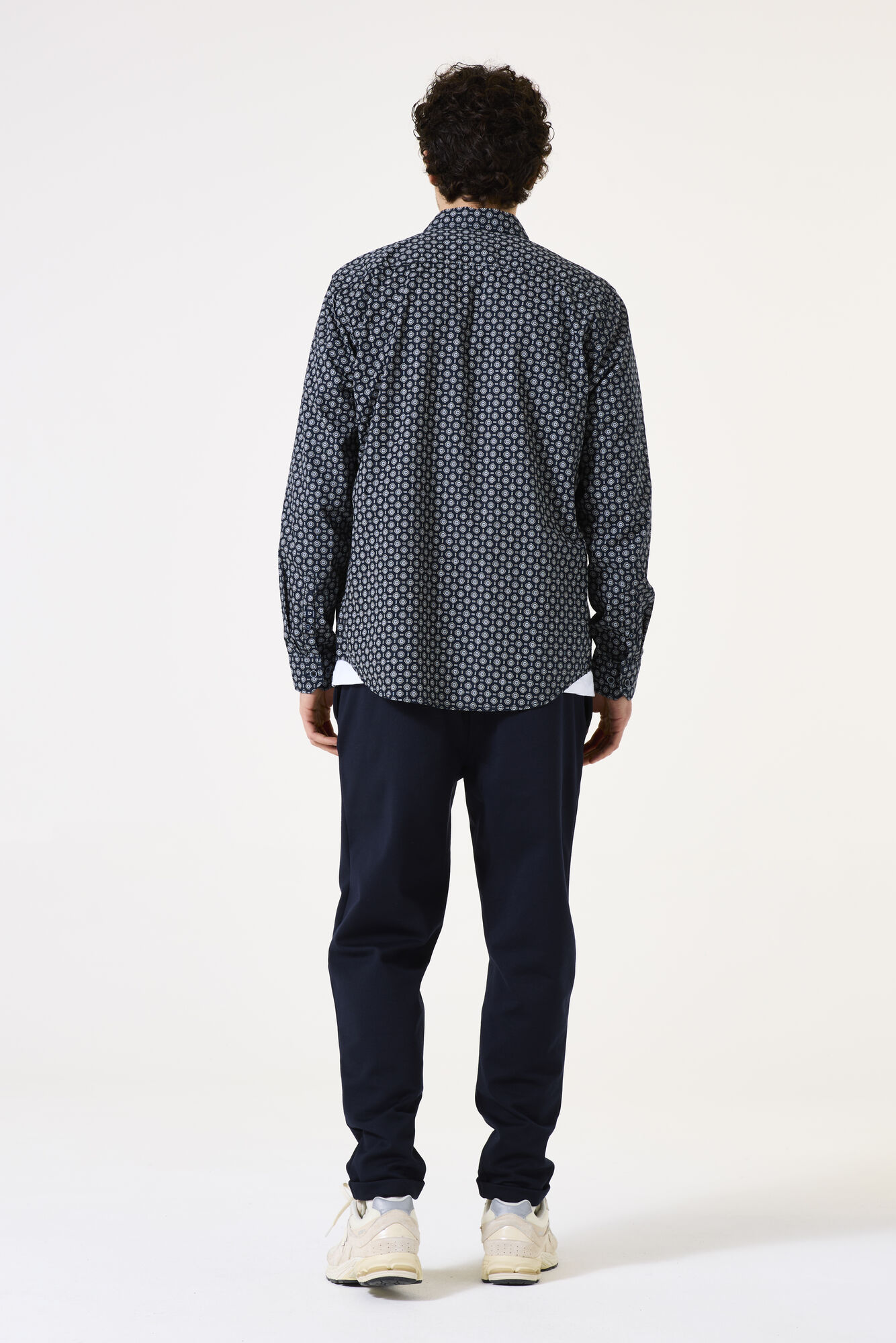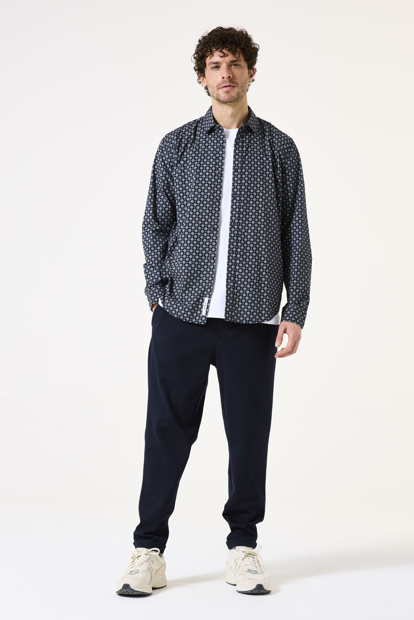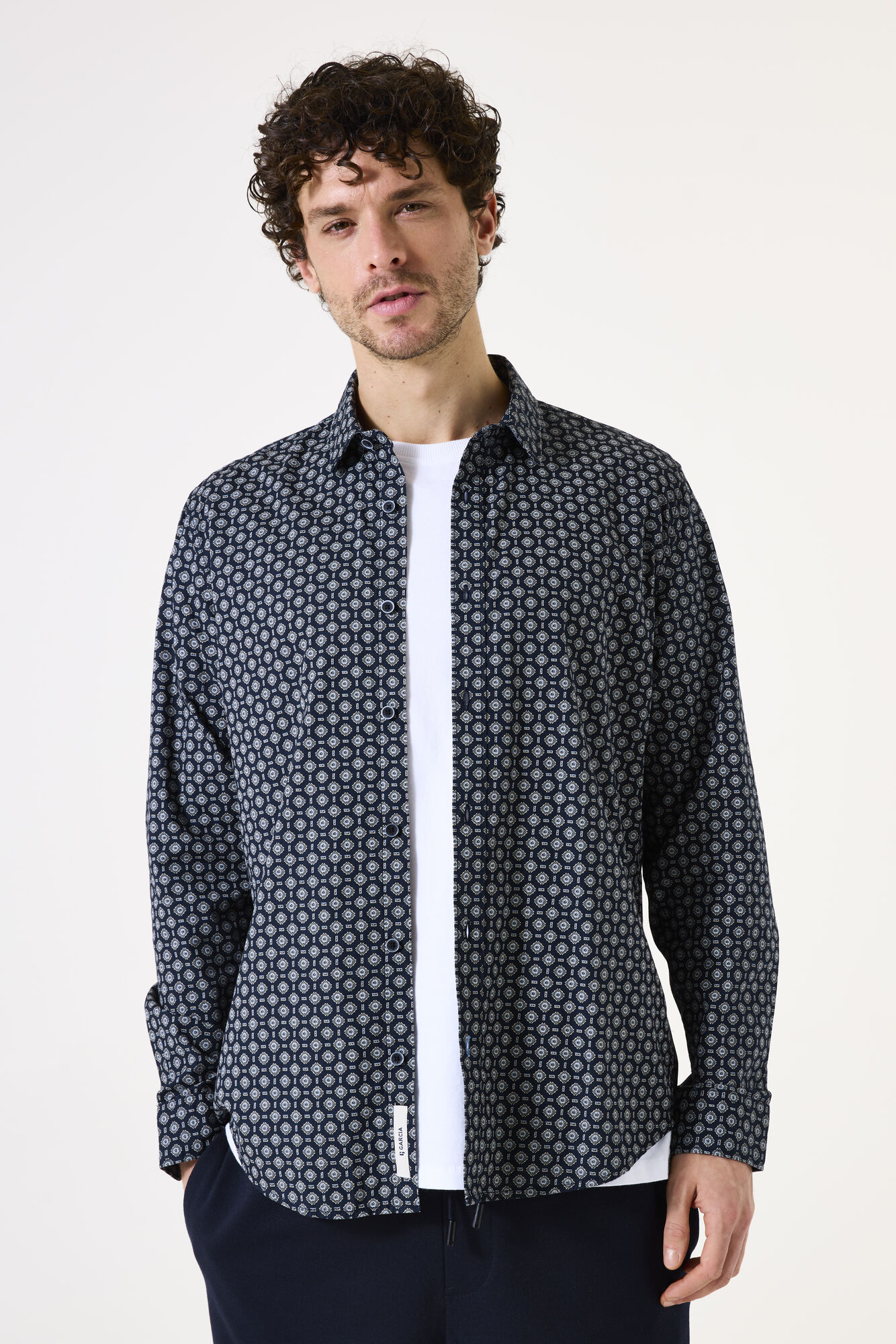 A long sleeved shirt with a regular-fit & button down closure. Featuring an all-over print & classic collar.