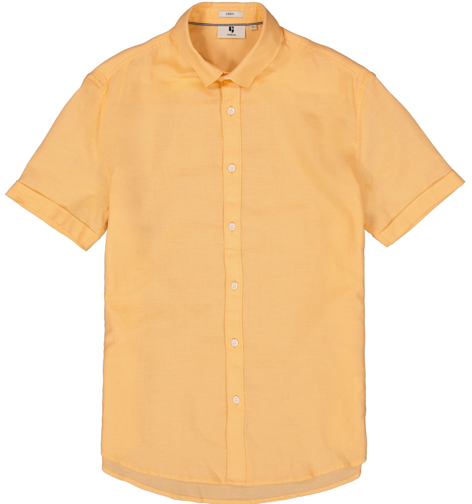 Linen and cotton blend shirt. A good basic like this should not be missing in your wardrobe! This shirt has short sleeves, a button closure, and a regular fit. This item is made of 55% linen and 45% cotton.