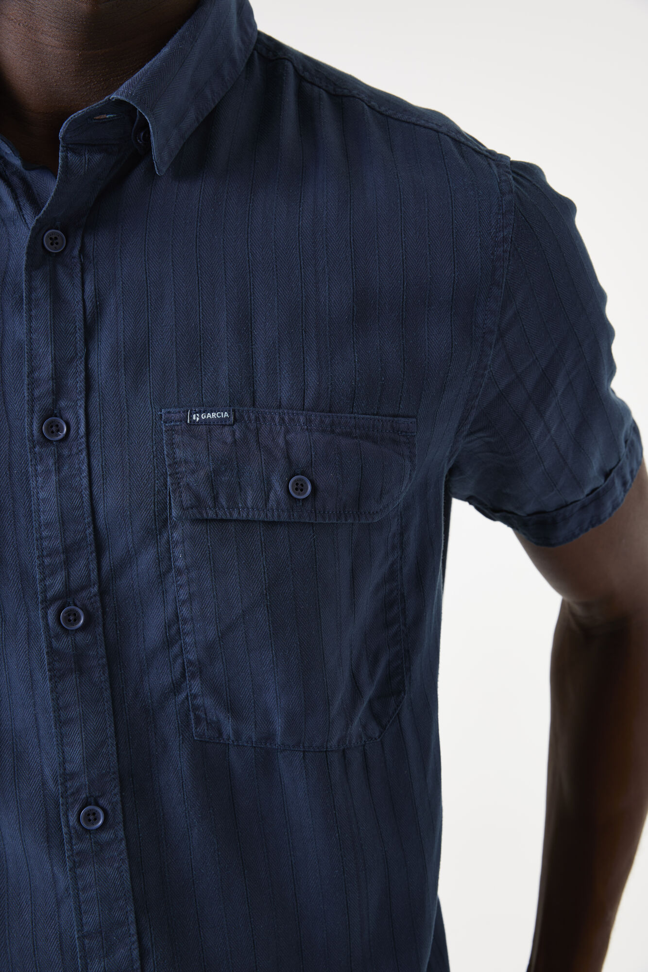 A regular-fit, short-sleeved shirt, featuring a subtle stripe & chest pocket.