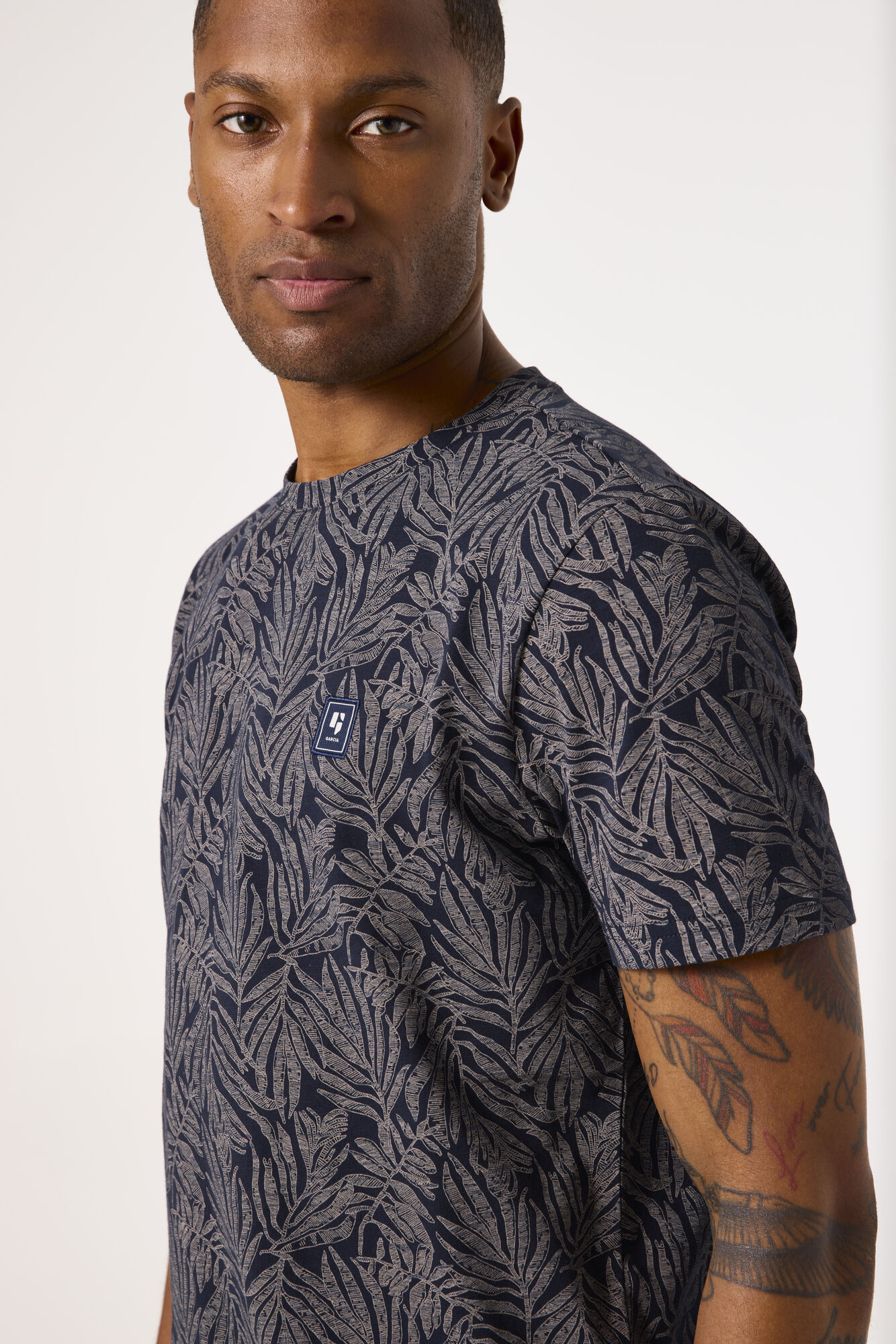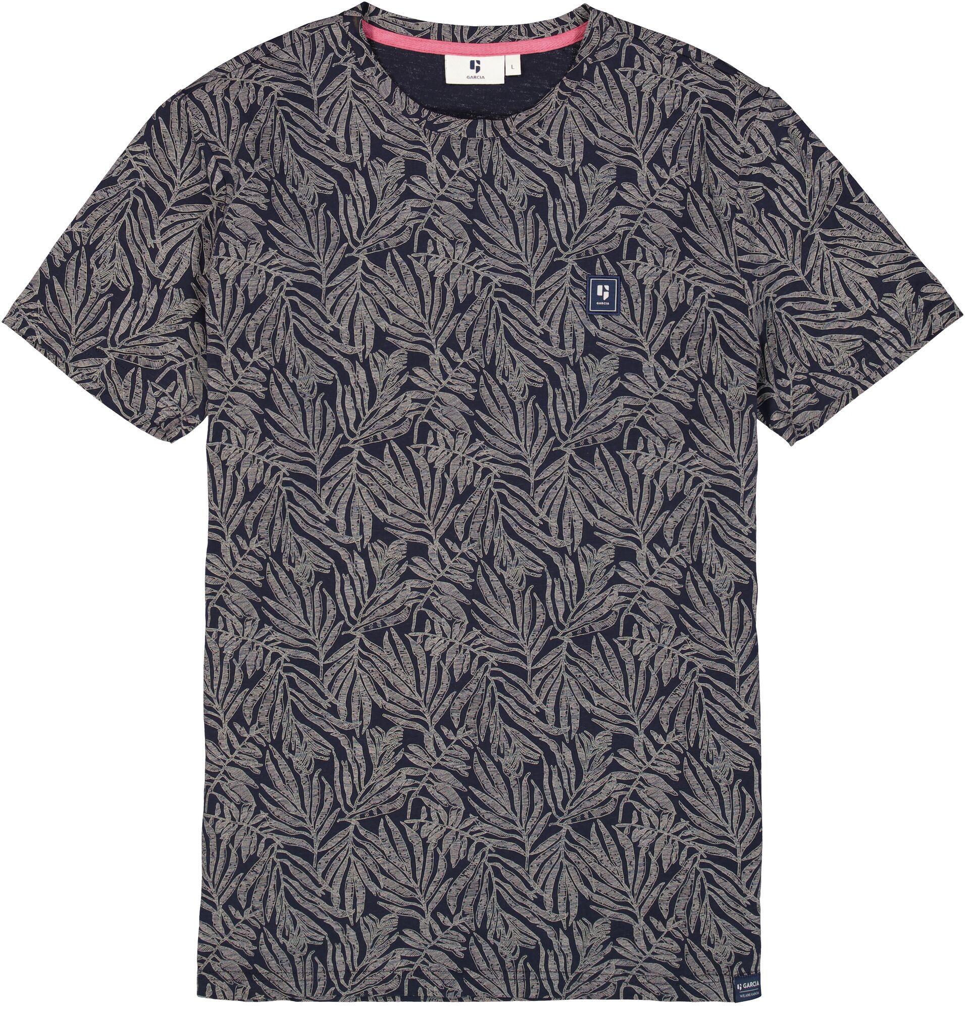 A regular-fit, short sleeve tee featuring a round neck, all-over print & small garcia logo on the chest.
