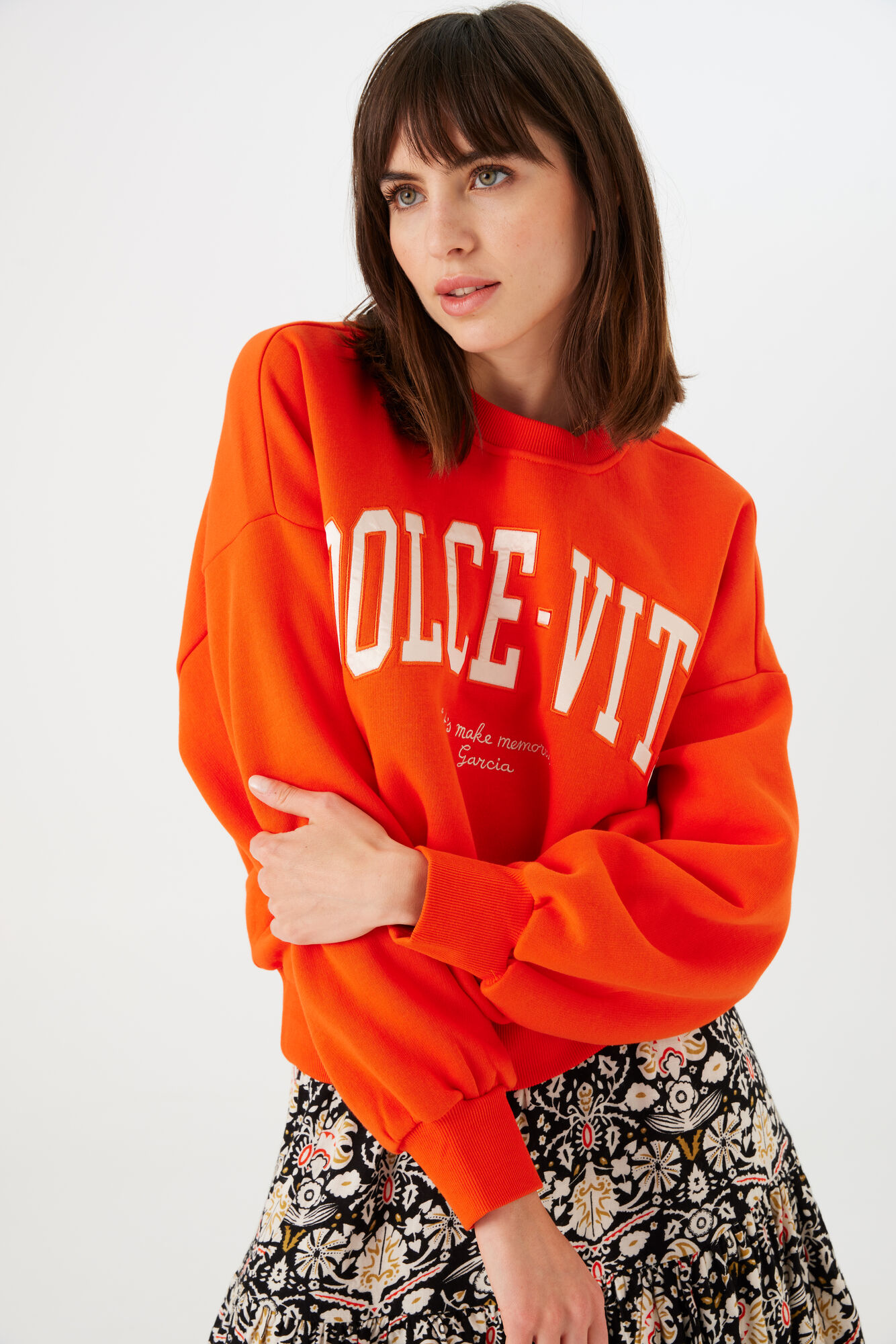 This Garcia women’s sweatshirt is a premium product made with 45% cotton, 30% polyester, 25% recycled cotton.