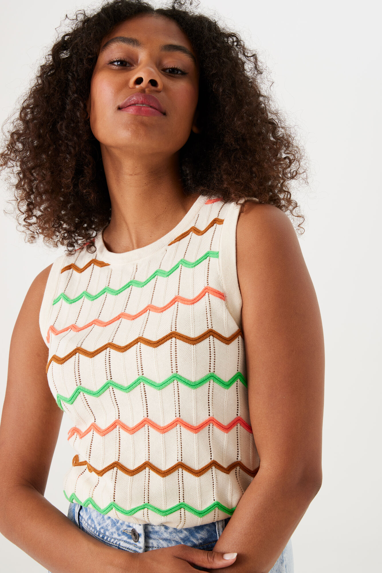 A regular-fit, knitted tank top featuring a round neck & zig-zag pattern.