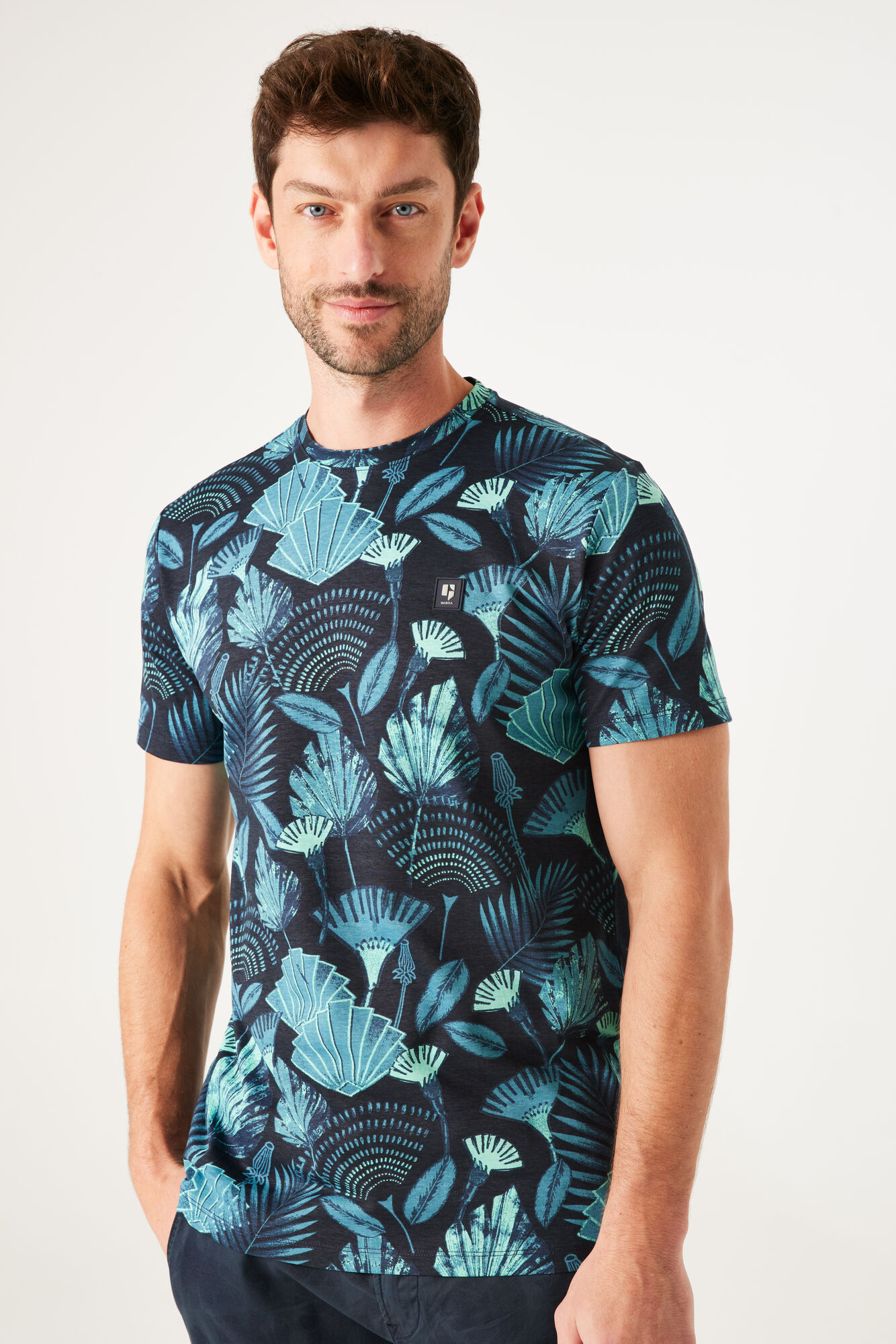 A regular-fit short sleeve tee featuring a round neck & all-over print.