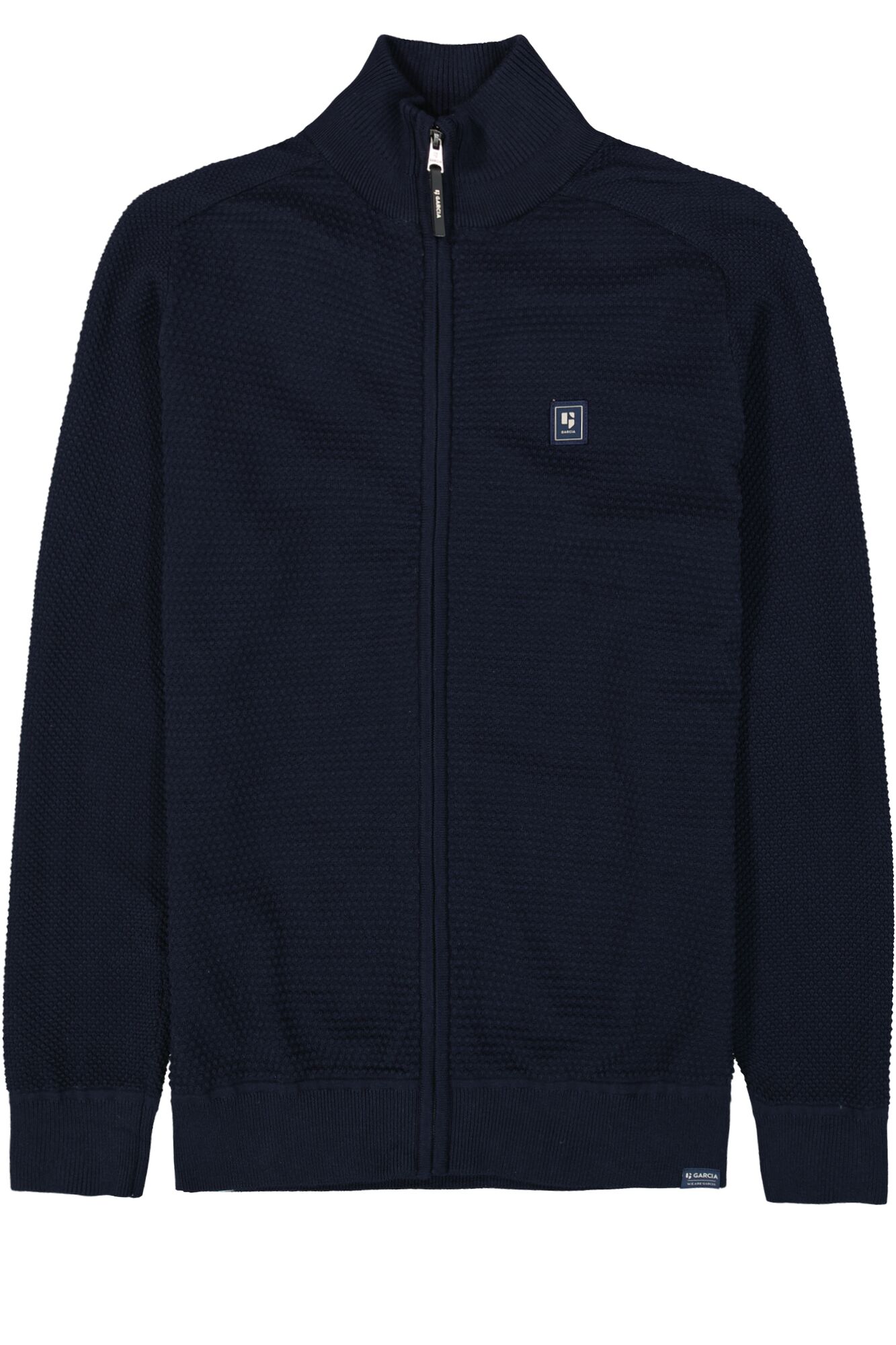 A regular fit, long-sleeved jacket featuring zip closure, stand up collar & the Garcia logo.