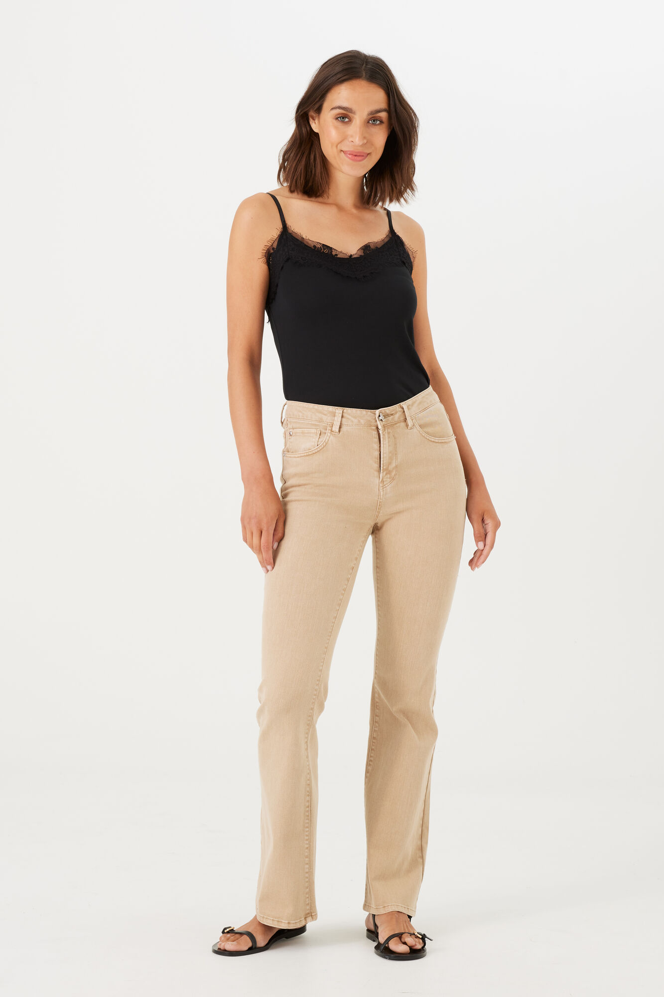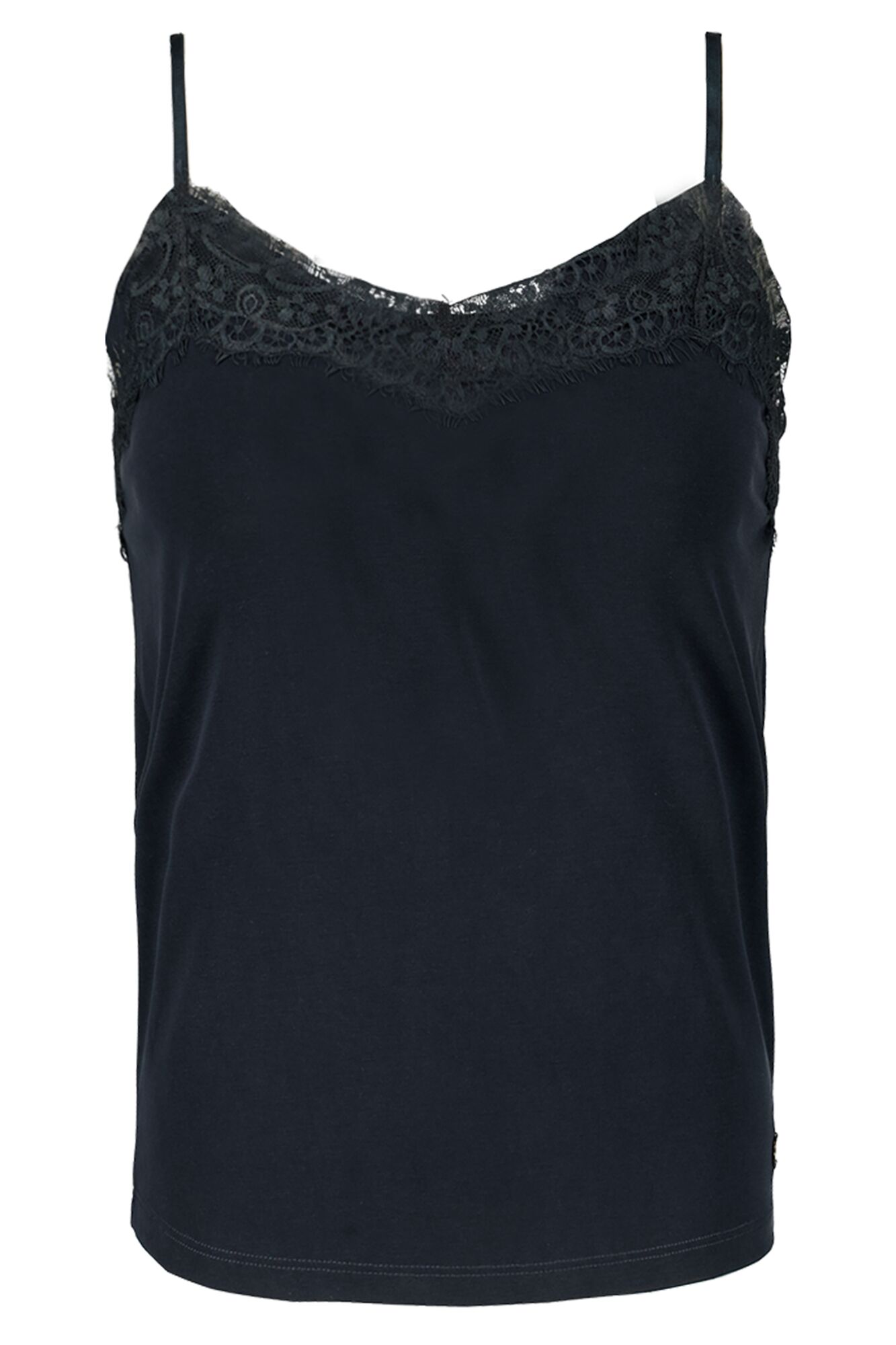 A regular fit singlet in a breathable fabric. Featuring a lace trim.