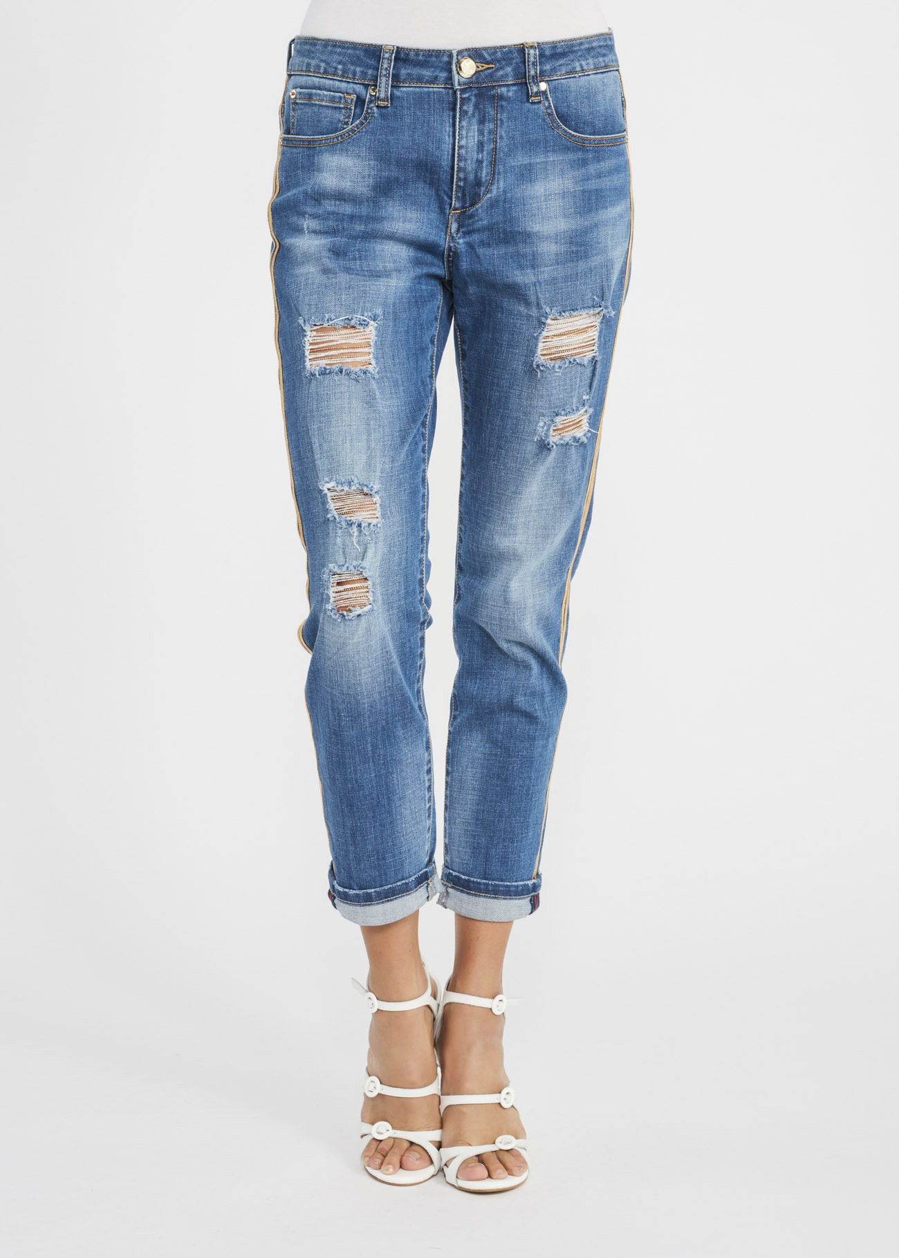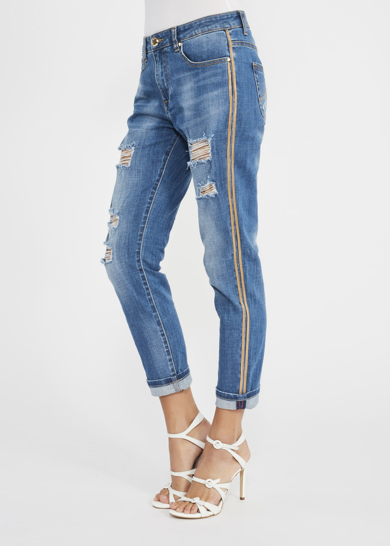 Gaudi Gaudi Female Denim Ripped Jeans With Side Tape Detail This product is currently out of stock and unavailable. SKU: N/A Category: Jeans Tags: Female Jeans, Jeans, Womens Additional information Additional information Size 28, 29, 30