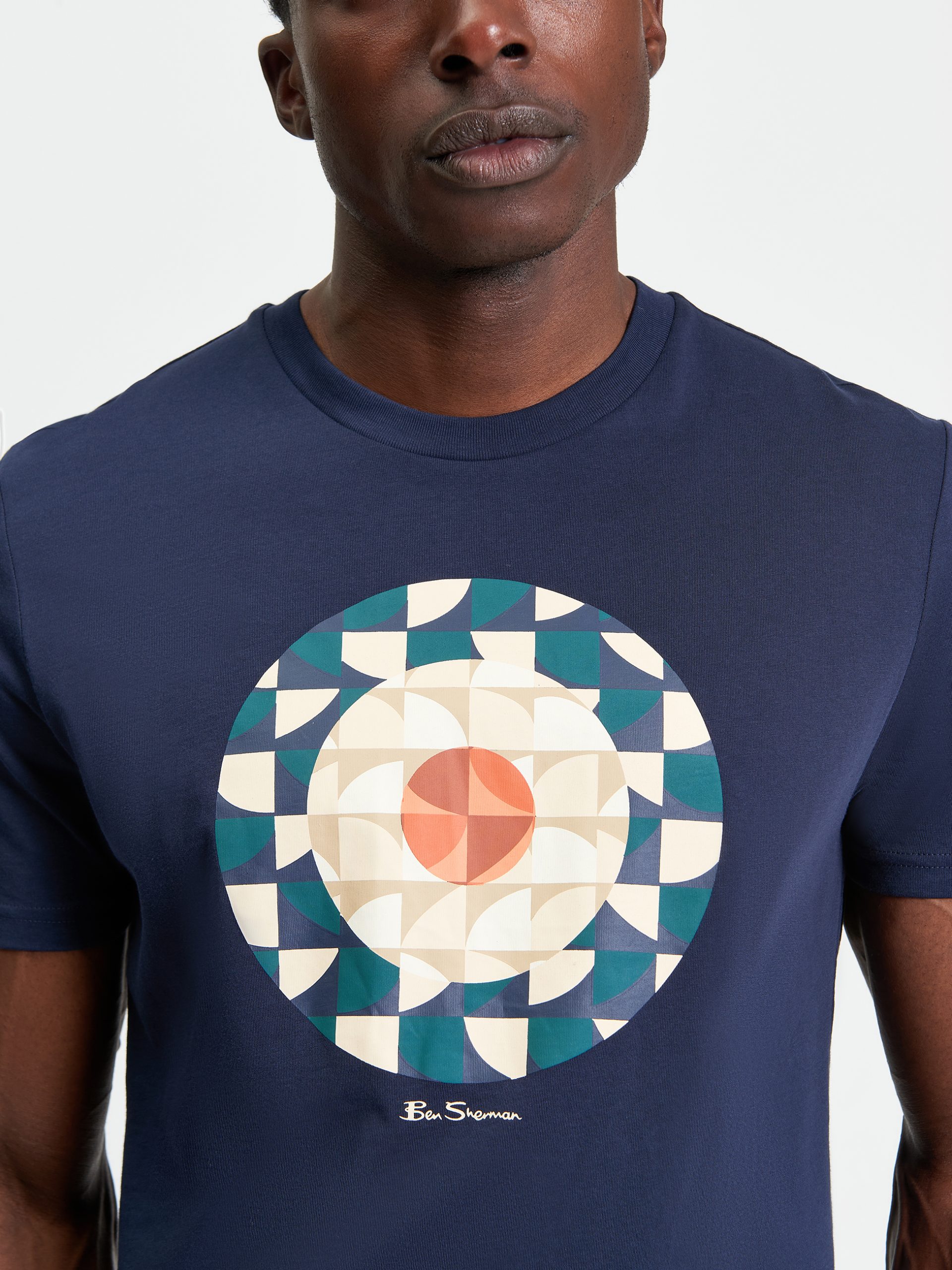 A short-sleeved tee with a regular fit, featuring a graphic geo target print with signature Ben Sherman branding.
