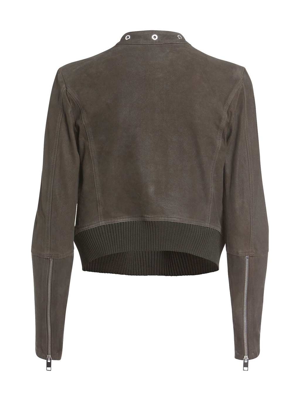 A regular fit, this jacket has two zip pockets, snap button collar & a two-way zip closure. Featuring an eyelet punctuated collar & cropped style.
