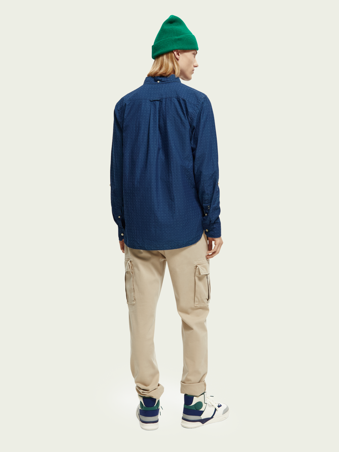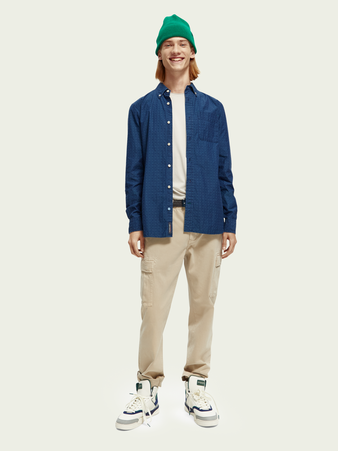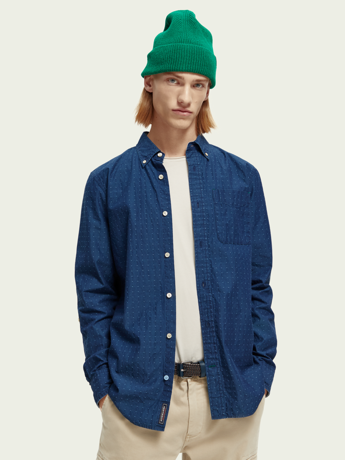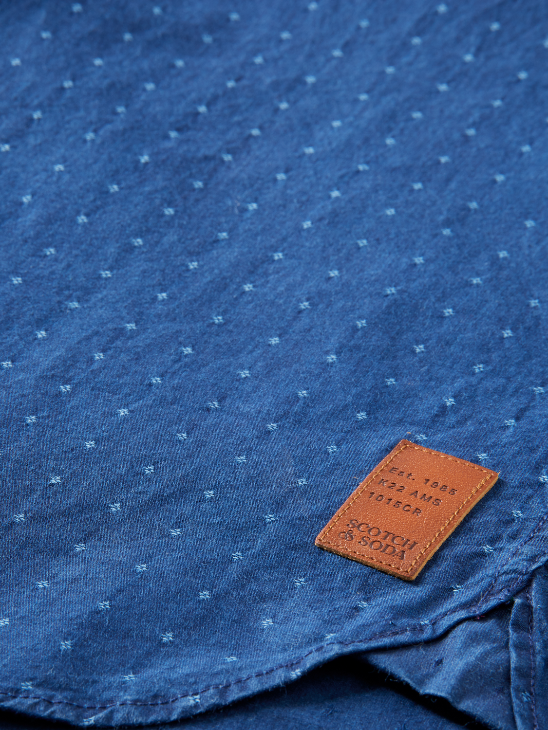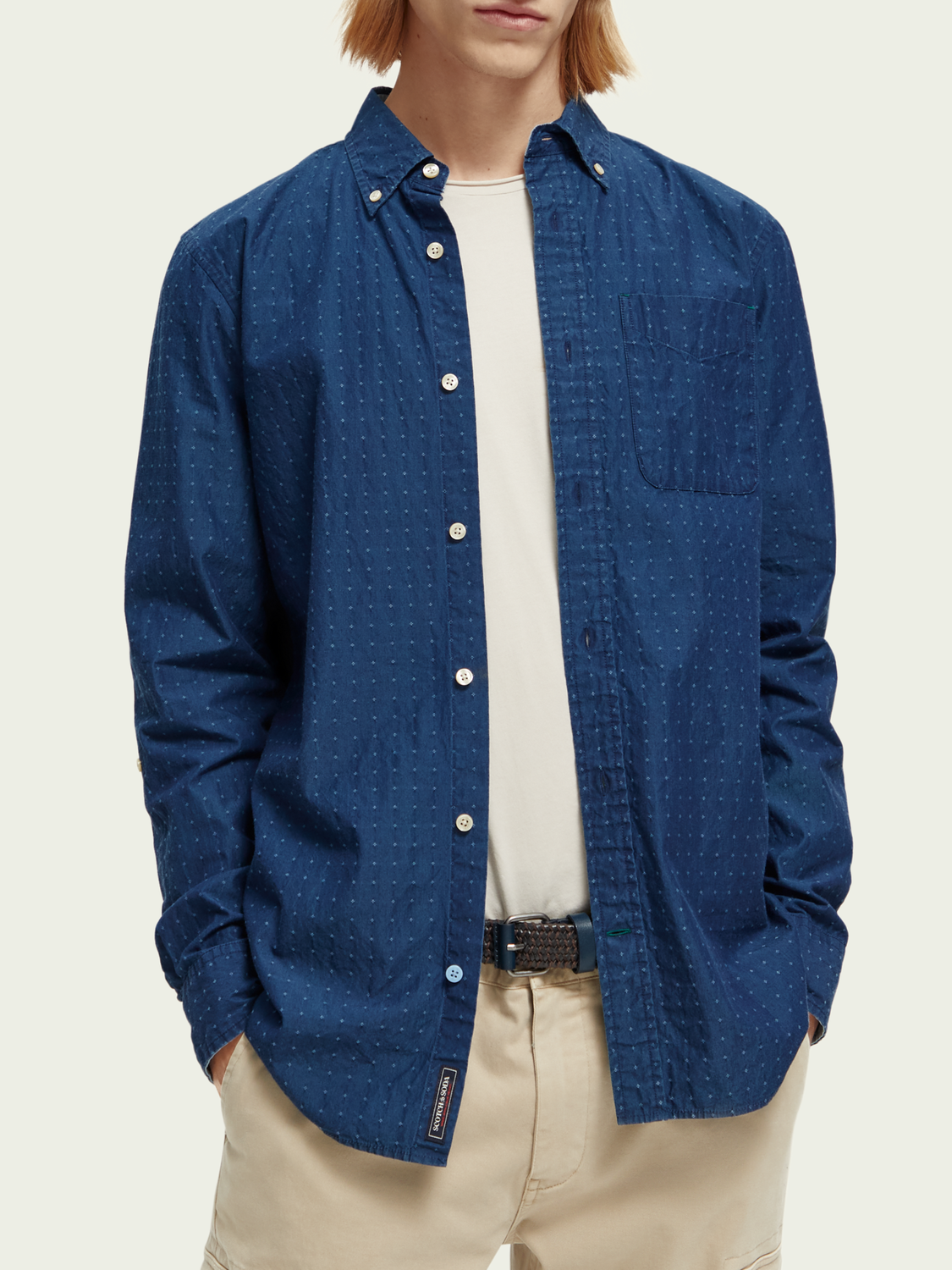 The lightweight Scotch & Soda shirt is perfect for layering or wearing on its own and comes in a indigo mini pattern fabric.