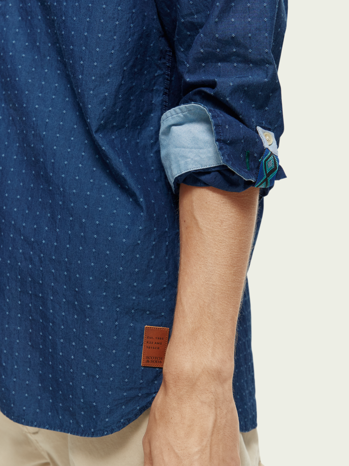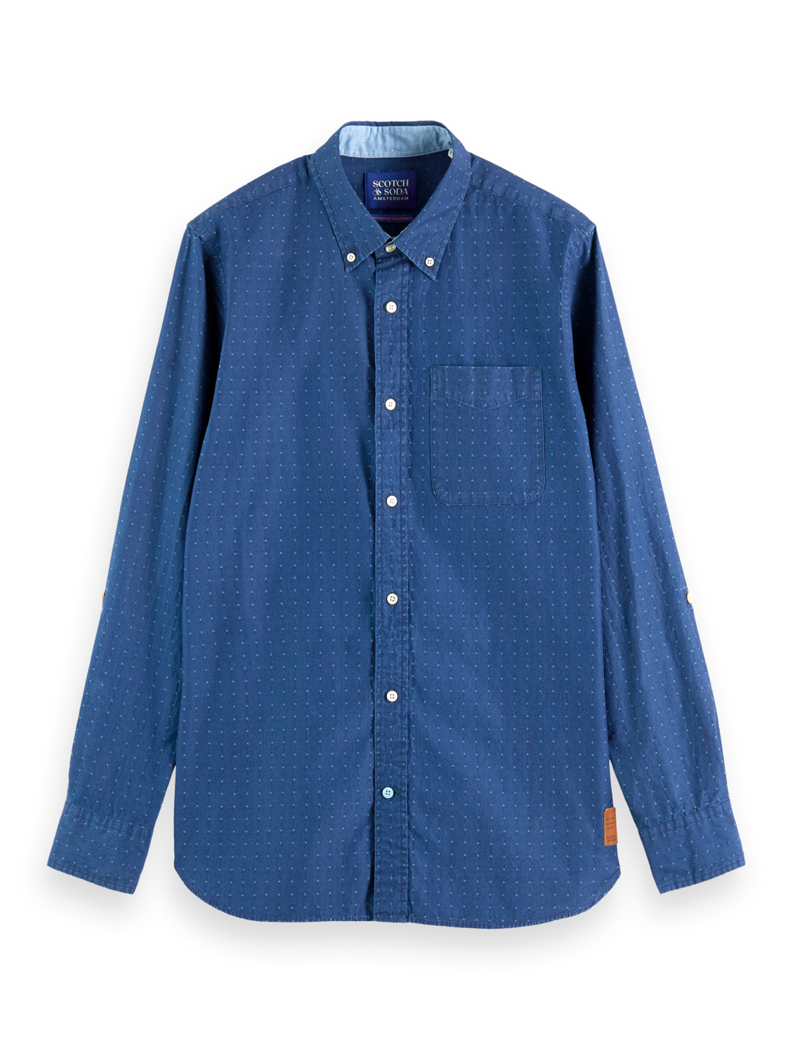 Scotch & Soda Lightweight Indigo Mini Pattern Shirt With Sleeve Adjusters