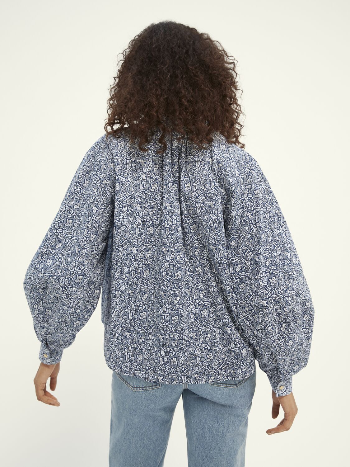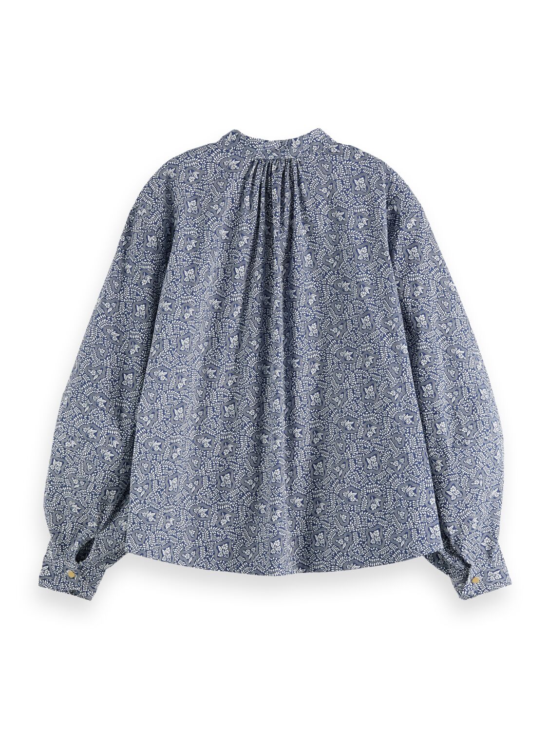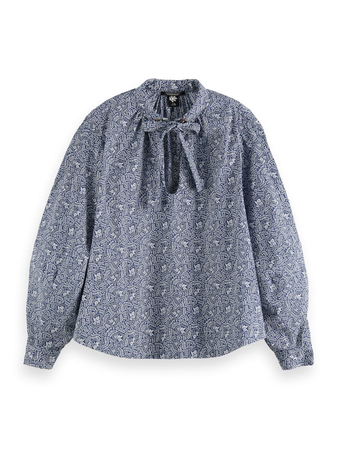 An oversized fit, with voluminous sleeves & all an-over print. This shirt features a neck tie that can be worn tied in a bow or left undone. A lightweight, versatile shirt that can worn for any occasion.