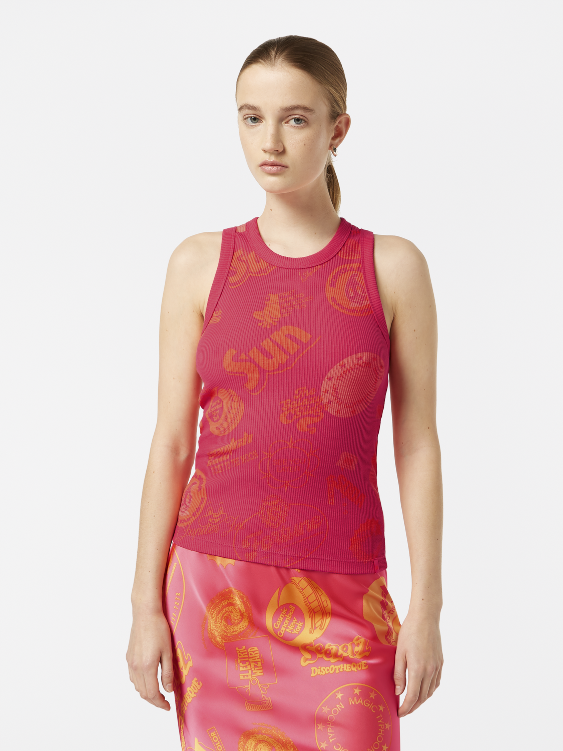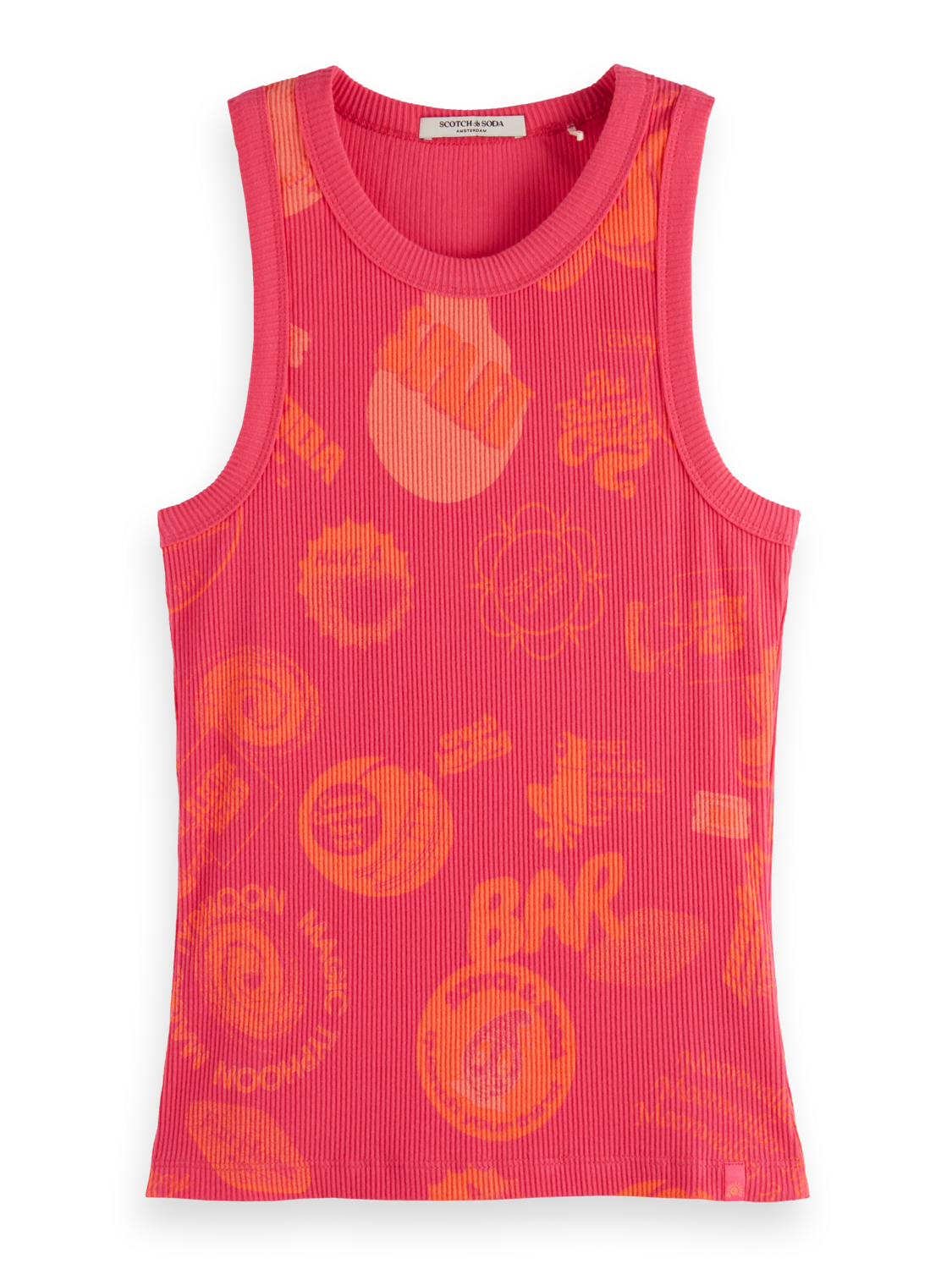 Scotch & Soda All Over Printed Rib Tank-Lunar Pier Pink