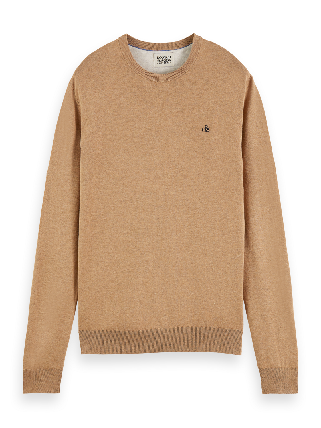 A regular fit knit sweatshirt featuring a crew neckline, long sleeves, ribbed hem & cuffs & small Scotch & Soda logo embroidered on the chest.