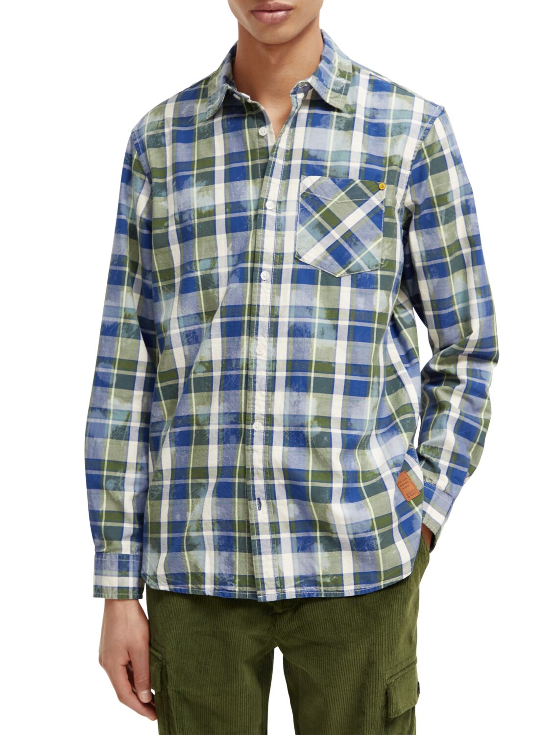 Scotch & Soda Denim Washed Checked Workwear Shirt-Field Green Check