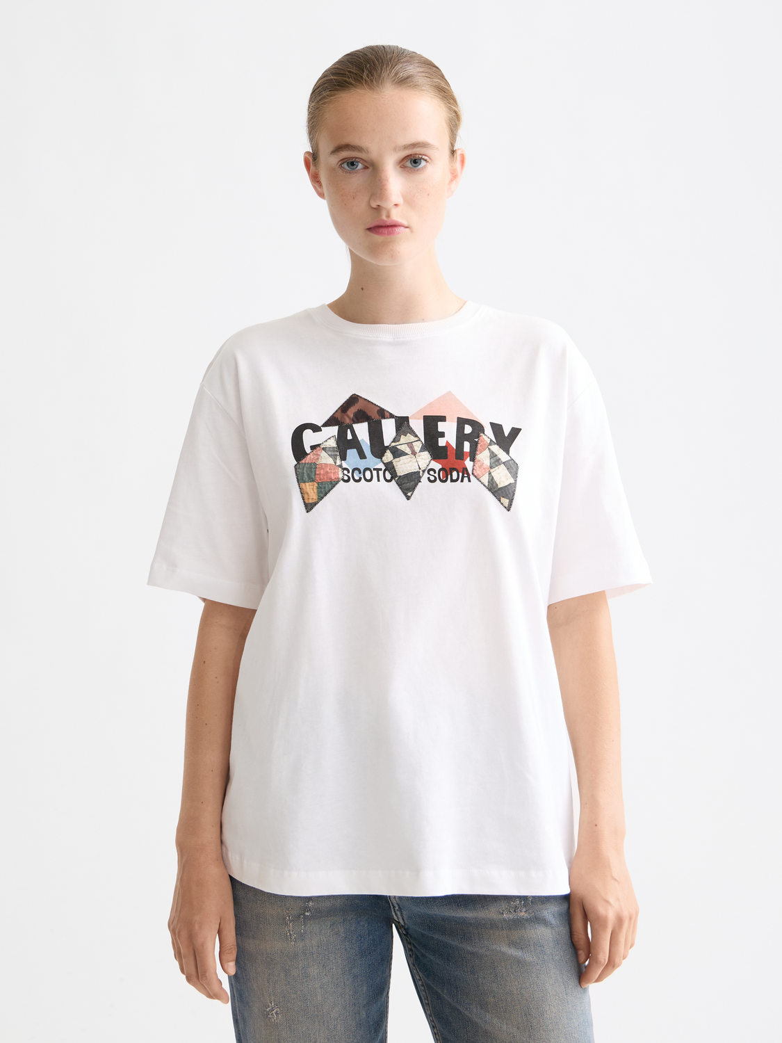 Scotch & Soda Elevated Artwork Loose Fit T-Shirt-Bright White