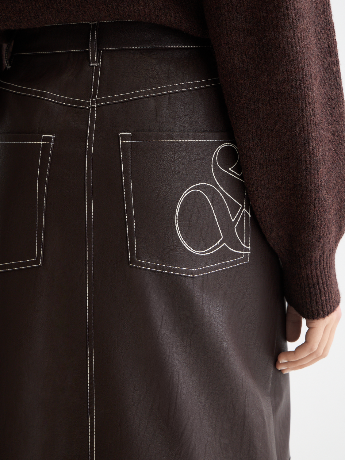 Scotch & Soda Faux Leather Midi Skirt With Front Slit-Chocolate Plum