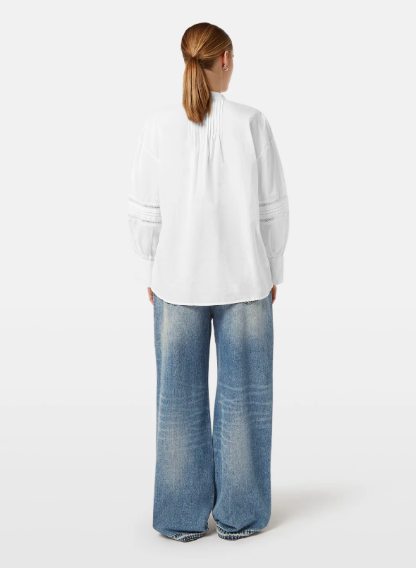 A relaxed-fit, bohemian style tunic. Featuring a high neckline, flowy sleeves & lace details.