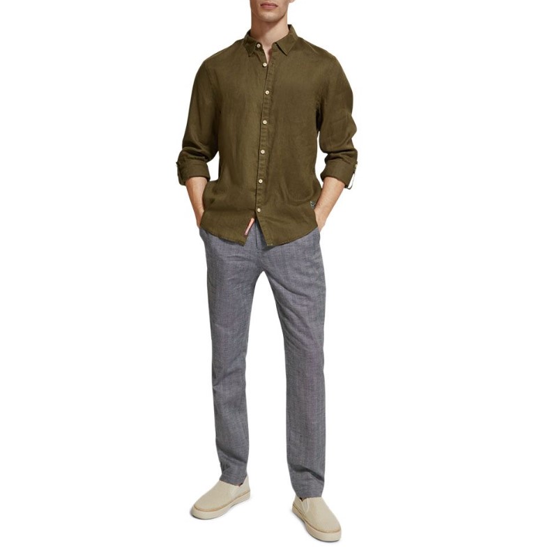 Scotch & Soda Linen Shirt With Roll-Up-Algae-24169354