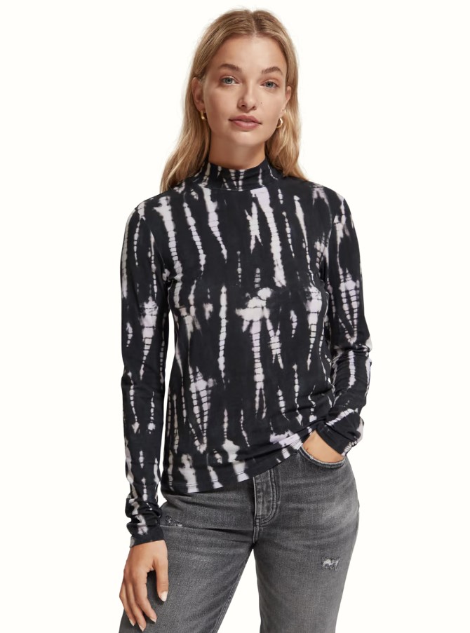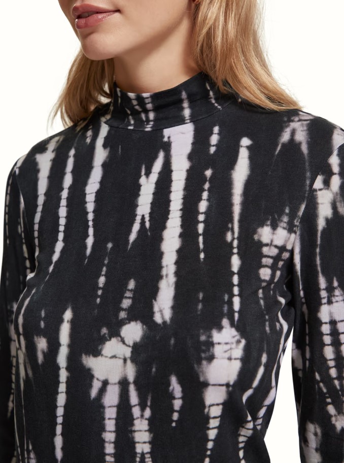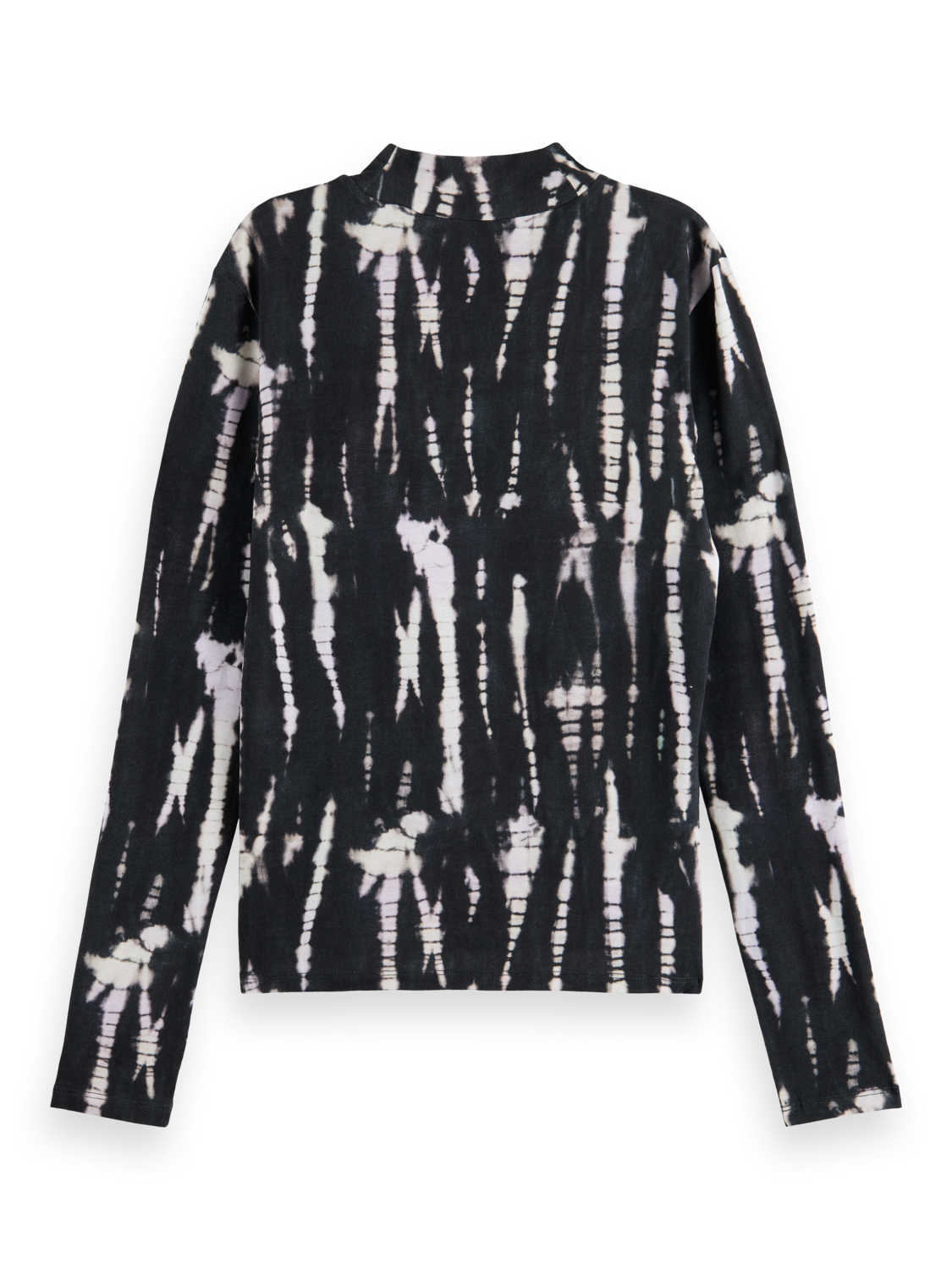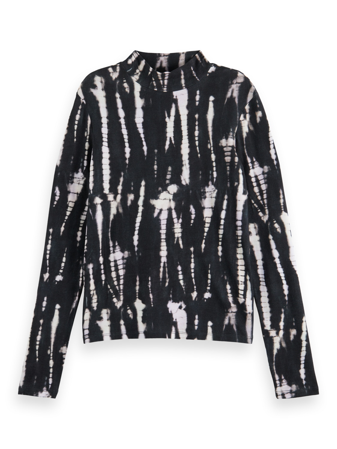 A long-sleeved tee featuring an all-over print & mock neck for a chic & comfortable look.