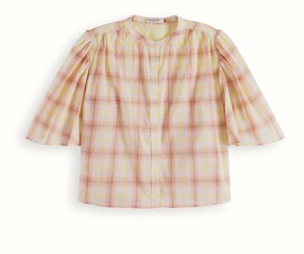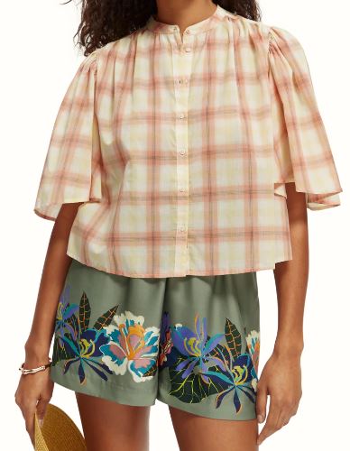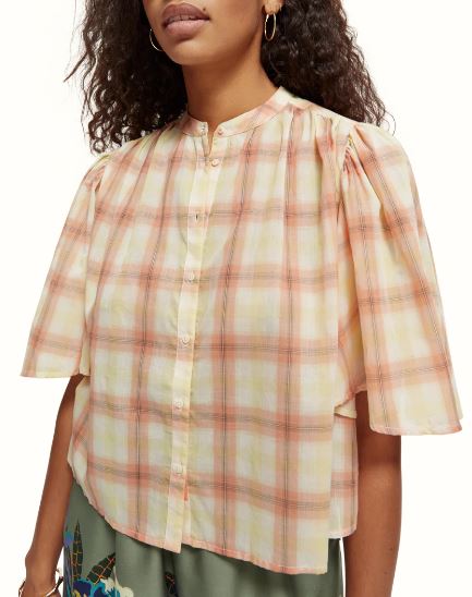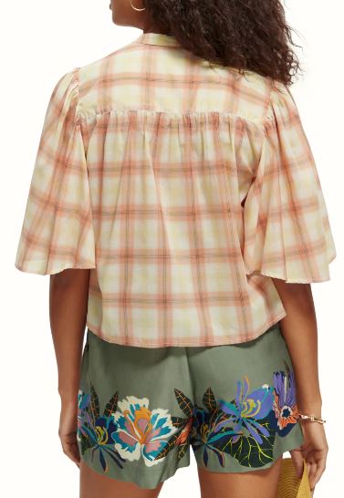 Scotch & Soda Plaid Flutter Sleeve Shirt