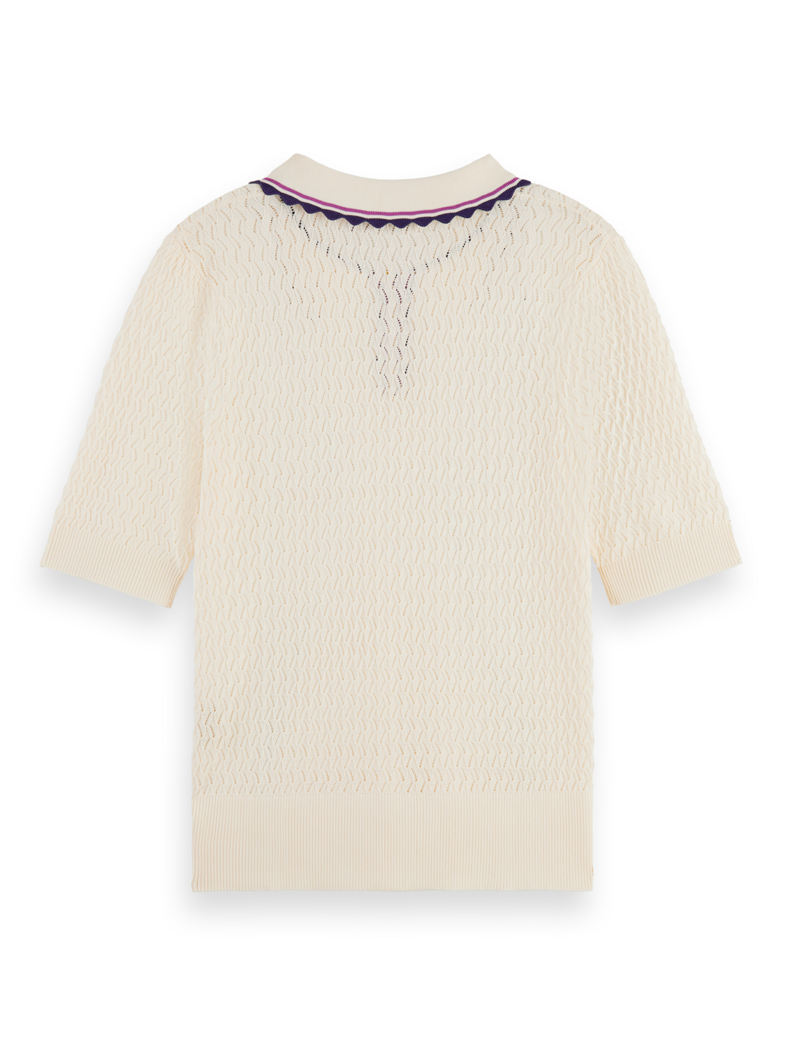 Scotch & Soda Pointelle Collared Knitted Tee-Soft Ice