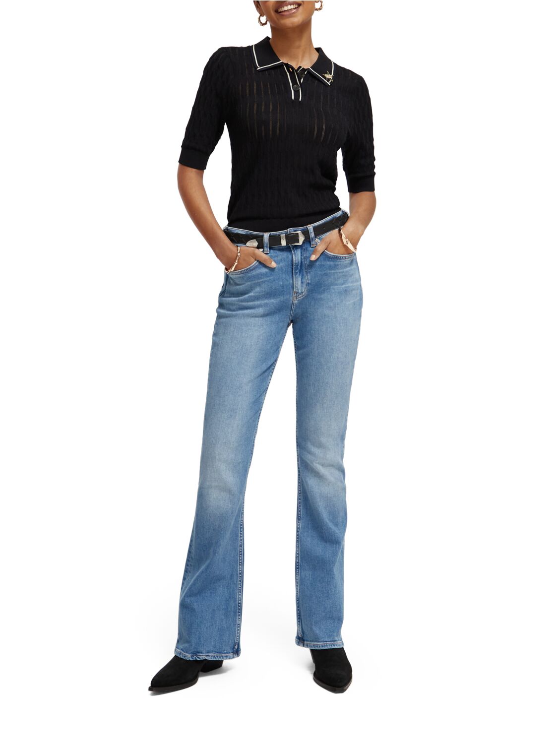 The Scotch & Soda women’s knitted tee has the versatility to be dressed up or down to suit the occasion.