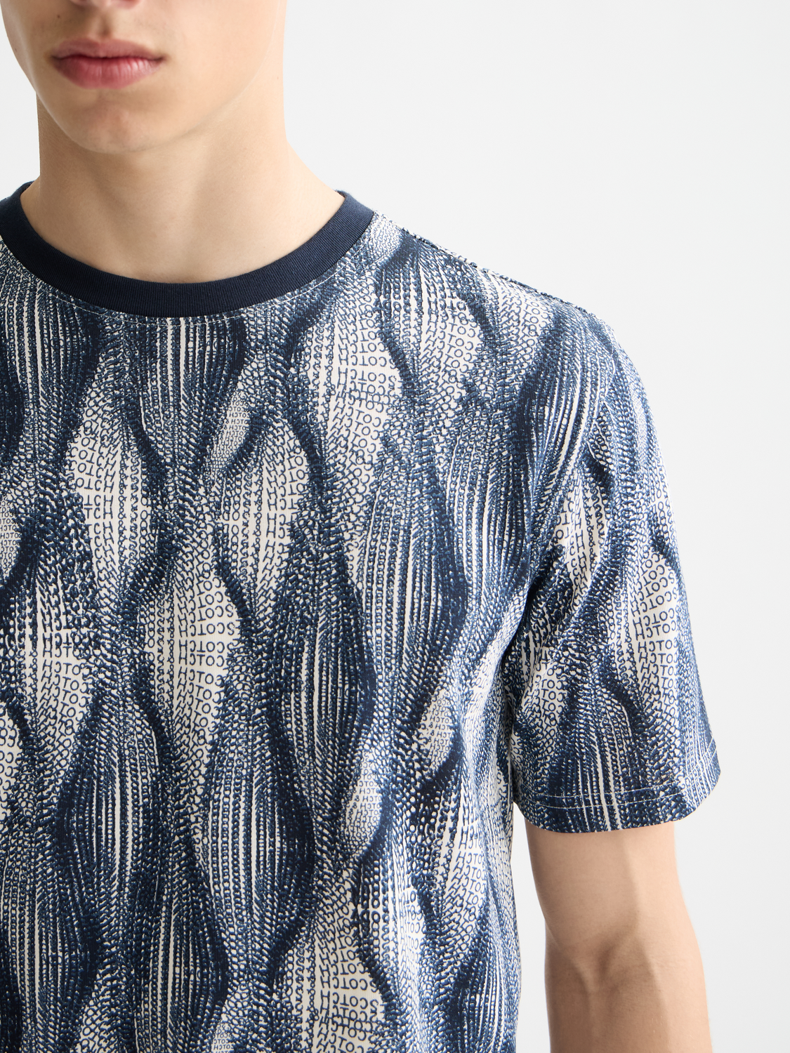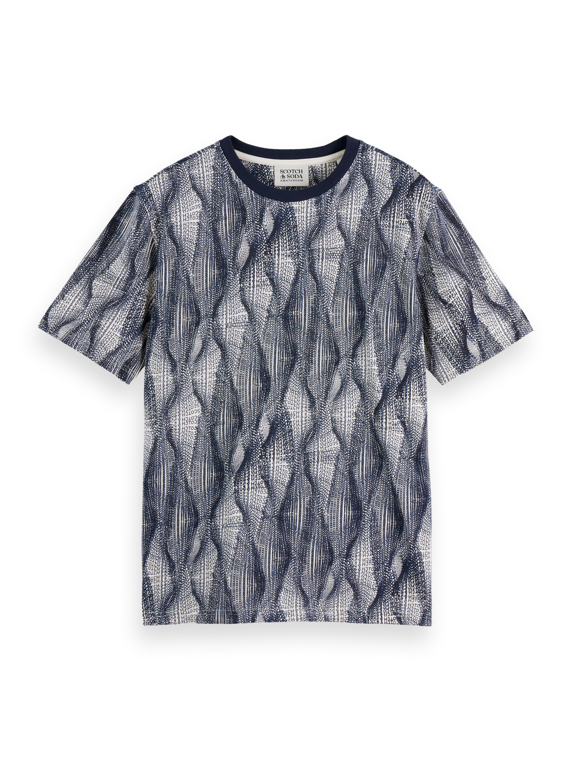Scotch & Soda Regular Fit Micro Aop T-Shirt-Batik Logo Print Navy Aop