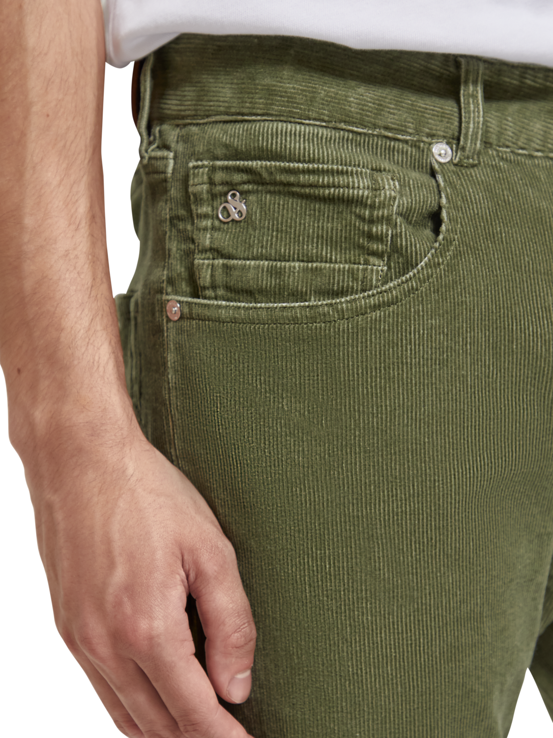 Regular slim-fit jean in a textured corduroy with a hint of stretch. Finished with a zip fly & coin rivet detailing.