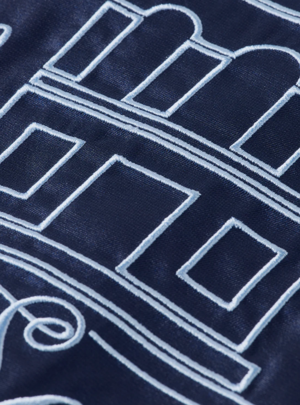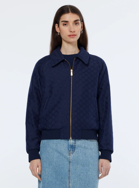 A reversible bomber jacket featuring refined embroidery on one side & solid colour on the other. Zip closure & ribbed hem & cuffsΒ