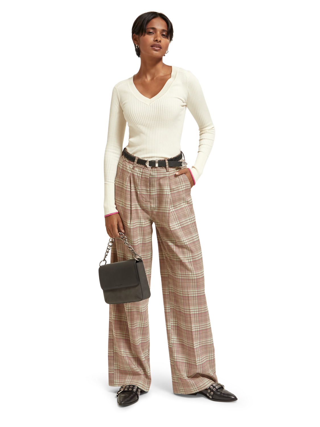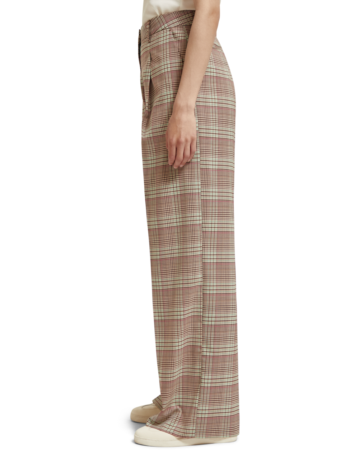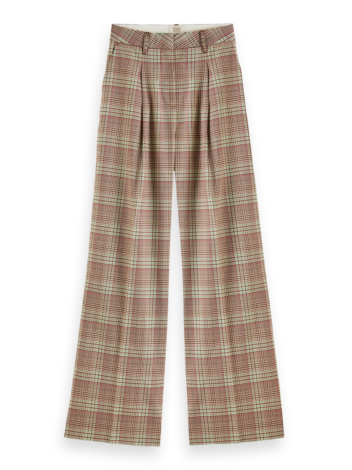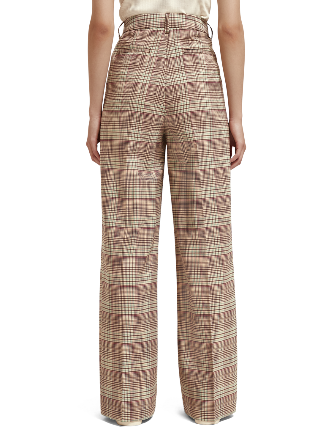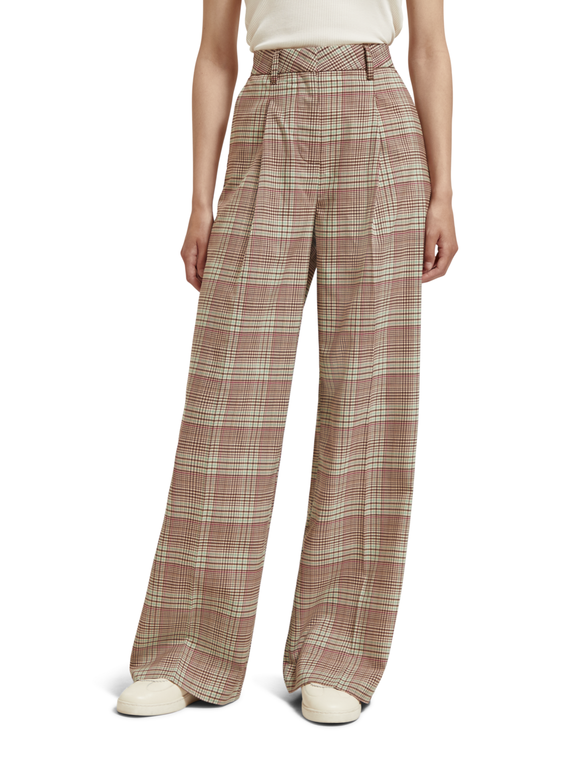 Scotch & Soda Rose – Pleated High Rise Wide Leg Check Pant-Prince Of Wales Check