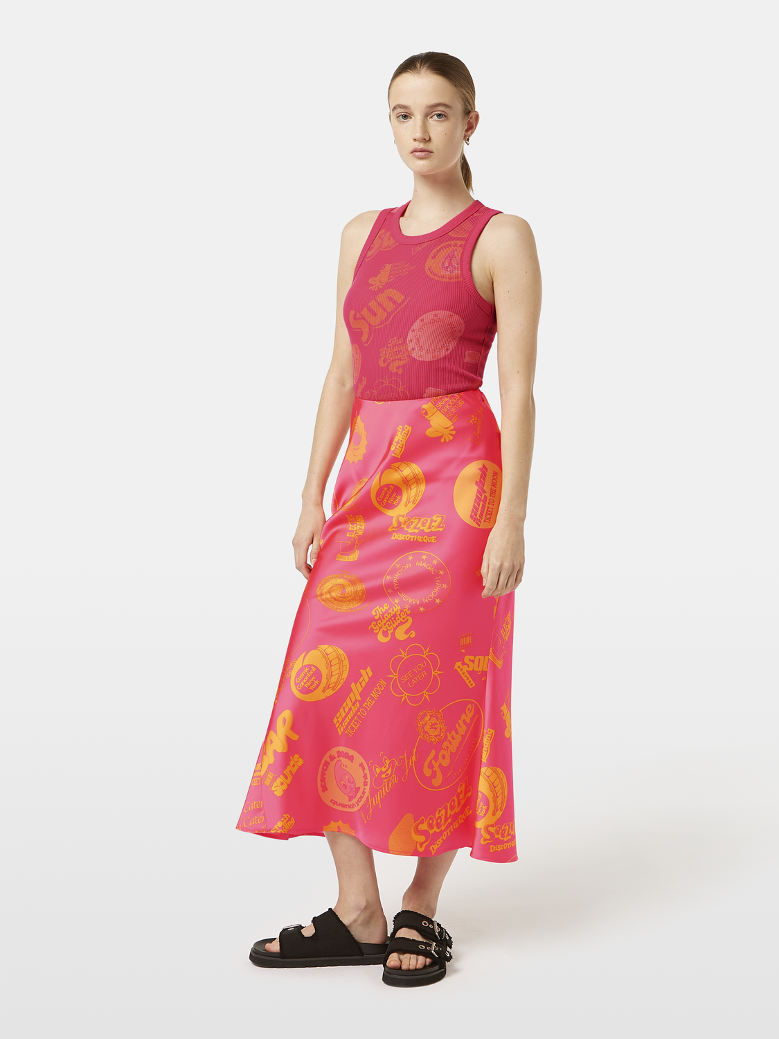 Scotch & Soda Satin Midi Skirt-Lunar Pier Pink