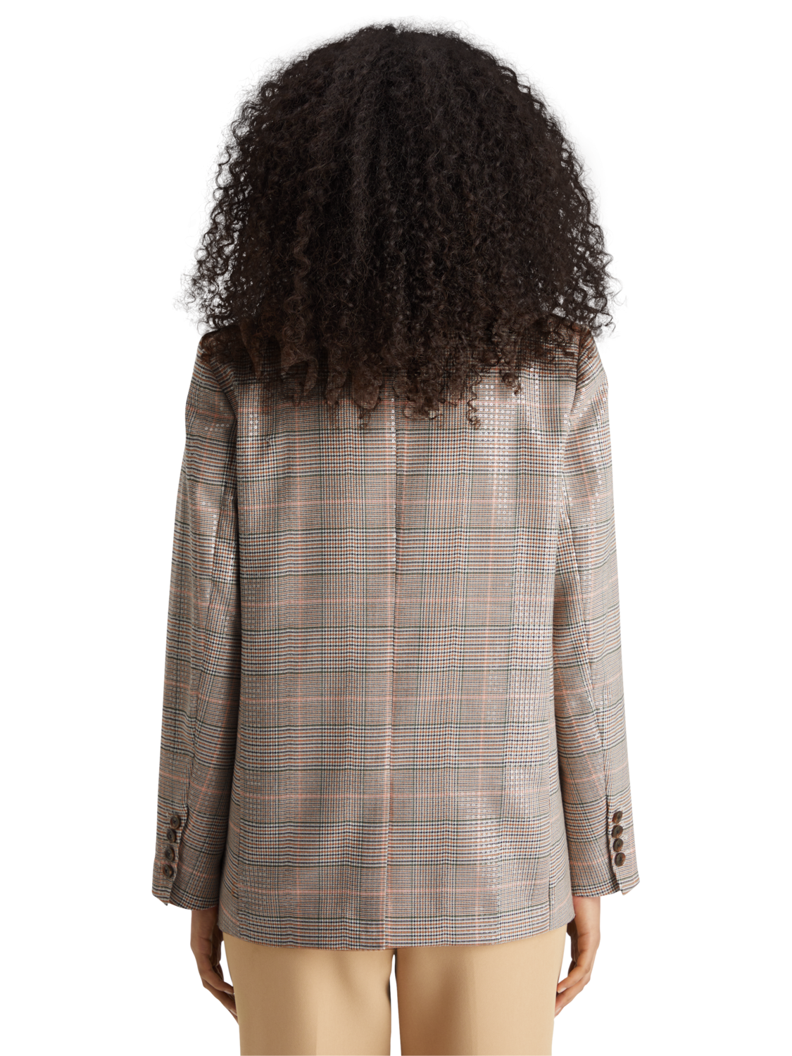 A single-breasted blazer featuring front pockets & sequins throughout.